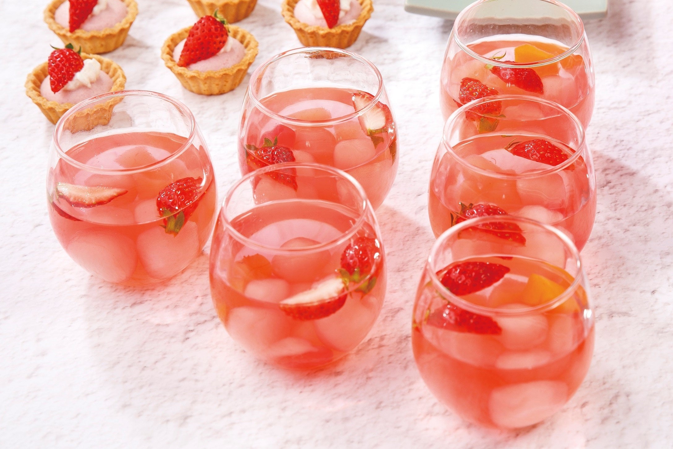 いちごのシロップに白玉といちごやフルーツを入れたフルーツポンチ
