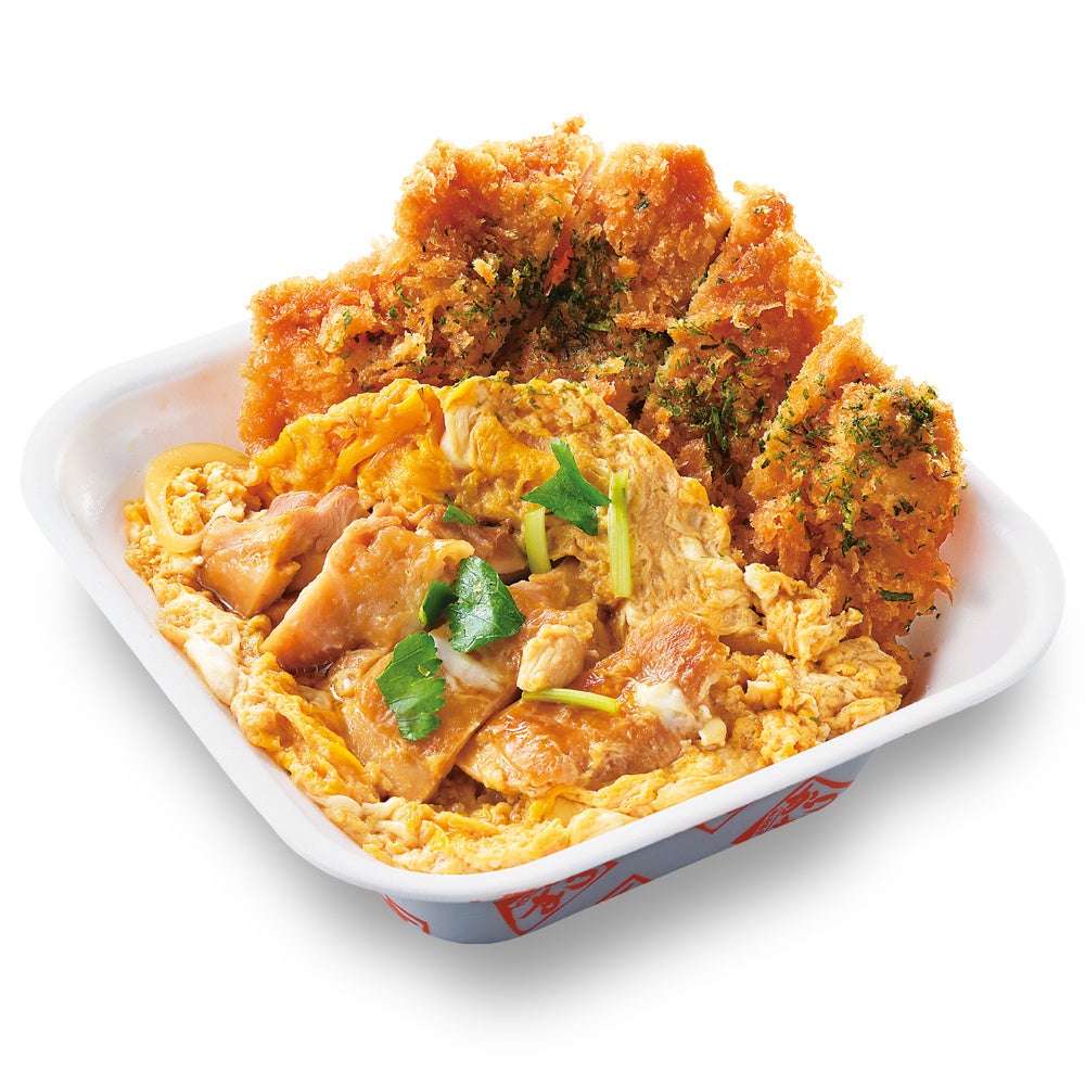 出汁をきかせた割り下で正統派に仕上げた親子丼と、ボリューム感のある鶏もも肉を甘じょっぱく仕上げたタレカツを合い盛りにして、おかずがご飯を奪いあう丼に仕上げました。