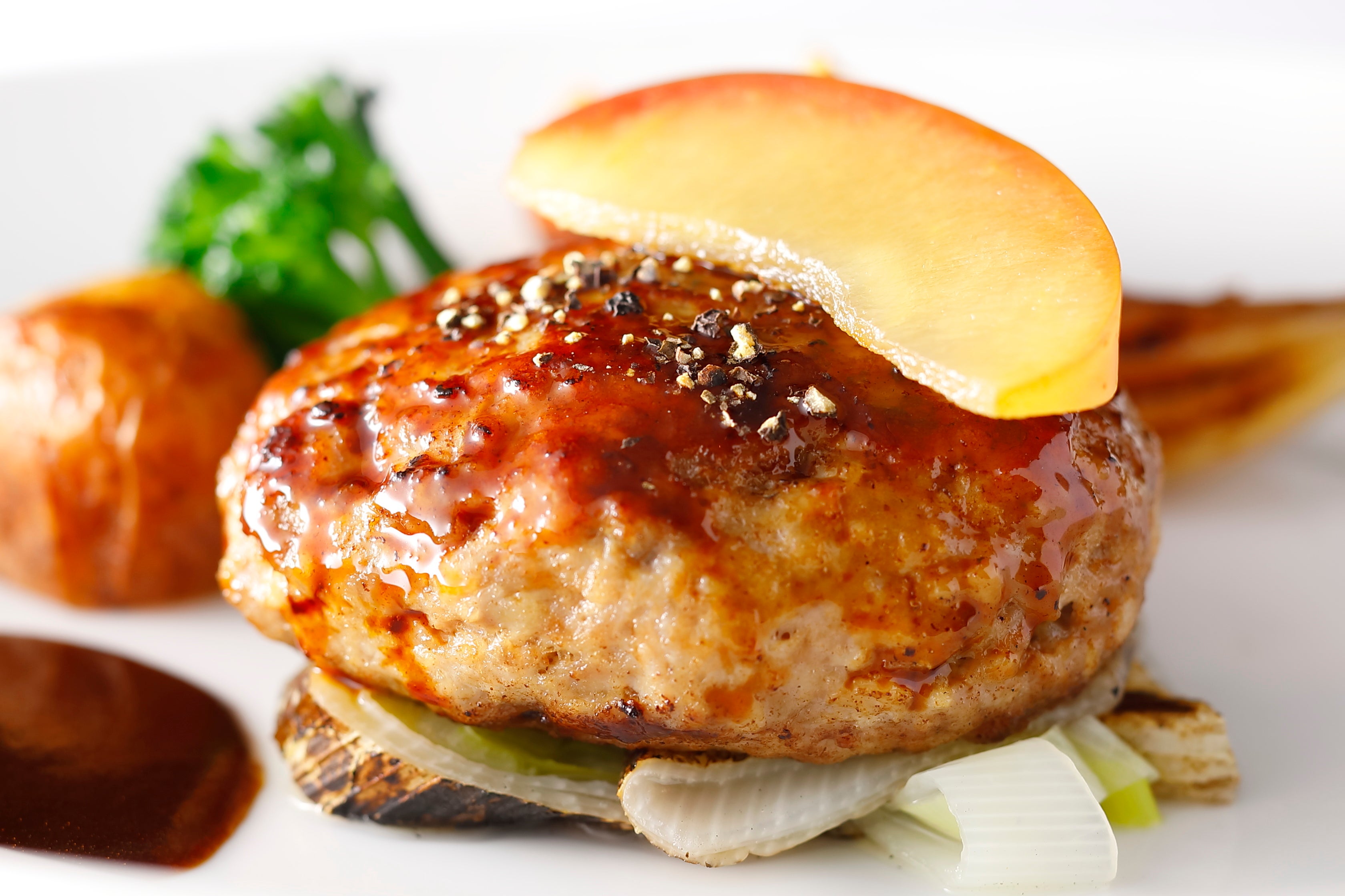 「旨茶」と一緒におすすめするメニューは「羊のハンバーグ 赤ワインソース」。柑橘の酸味やスパイスが効いた旨茶が、はちみつ・黒蜜・アチェードバルサミコで仕上げたハンバーグの旨みをさらに引き立たせます。