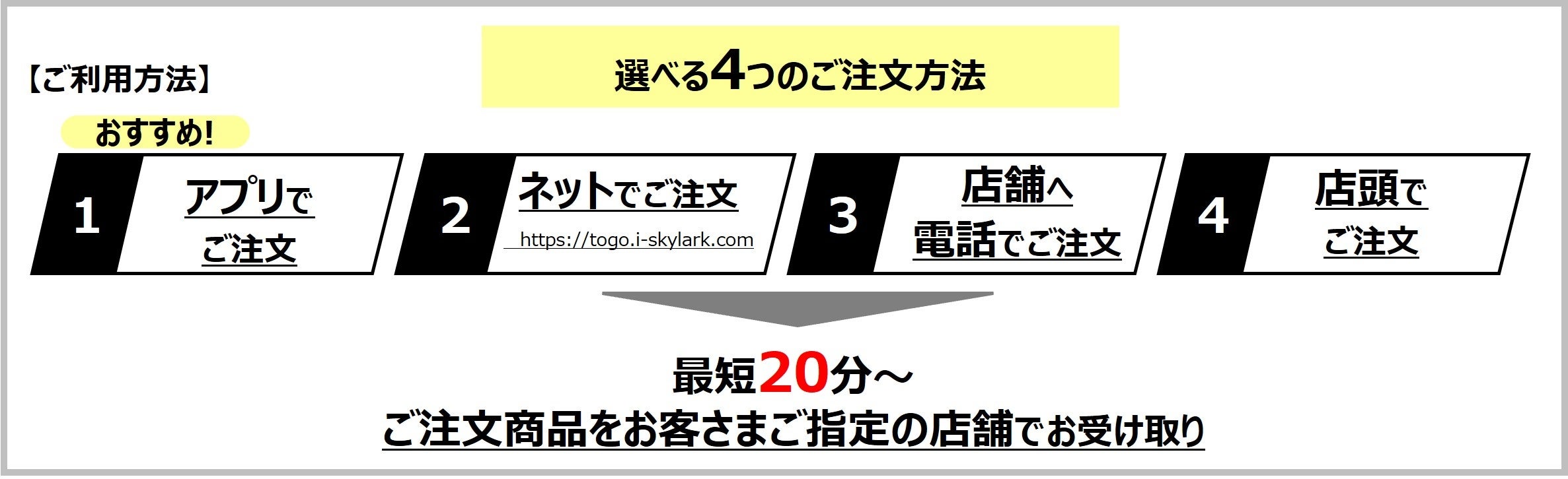 ・テイクアウト専用サイトURL :https://togo.i-skylark.com