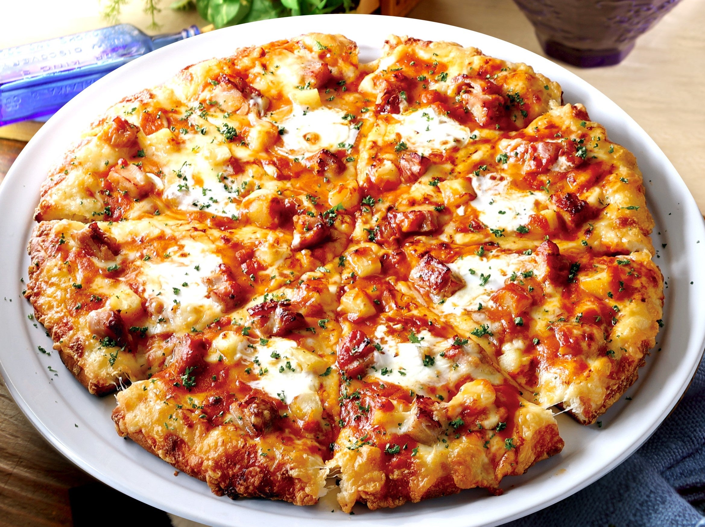柔らかなグリルチキンの旨みに、クリーミーなマスカルポーネ、こだわりぬいた特製バターチキンカレソースが一体となった、スパイスの豊かな風味とまろやかなコクのある味わいが特徴のピザーラの新しいカレーピザです。