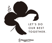 晴海トリトンでは新型コロナウィルス感染の終息まで、近隣住民の皆様やオフィスワーカーの皆様、関係会社様と共に「一緒に頑張っていこう」との願いを込めロゴマークを制作しました。
