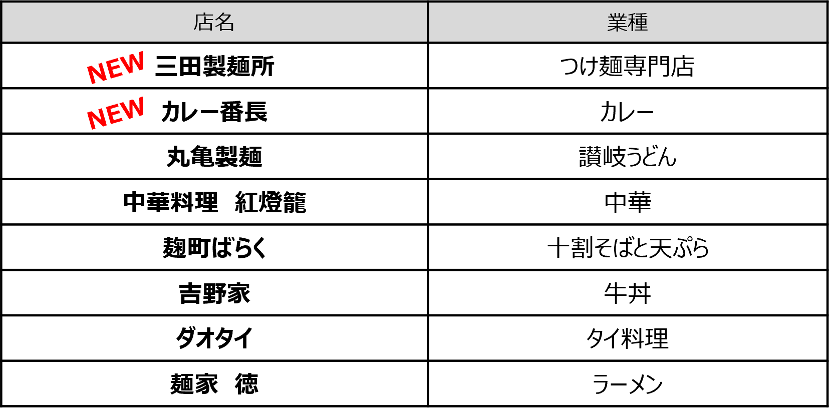 ■リニューアル後(3/5以降)の出店店舗