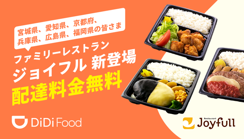 DiDi フードジャパン株式会社の運営するデリバリーサービス「DiDi Food」に、株式会社ジョイフル(代表取締役社長:穴見くるみ、本社:大分県大分市三川新町一丁目 1 番 45 号)が展開する「ジョイフル」が 2022 年 2 月 22 日(火)より、加盟店に加わります。
