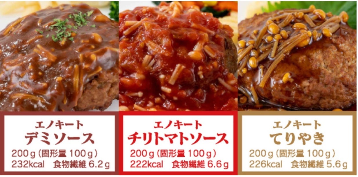 ▲「エノキートハンバーグ」のバリエーションは、3種類をご用意