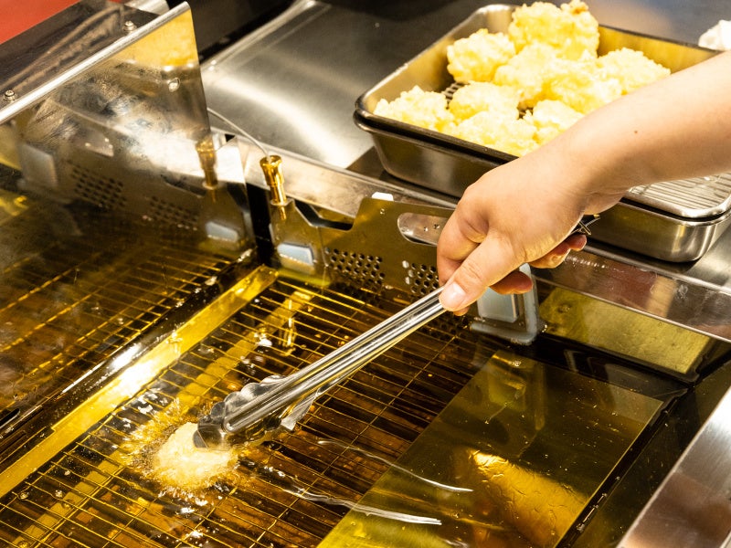 揚げ油は米油100%を使用。米油は栄養成分が凝縮された健康的な油と言われ、アンチエイジング、美肌効果のある成分が多く含まれています。油切れがよいので油っぽさが少なく、カラッと揚がり素材の味を引き立たせた鶏天を味わうことができます。