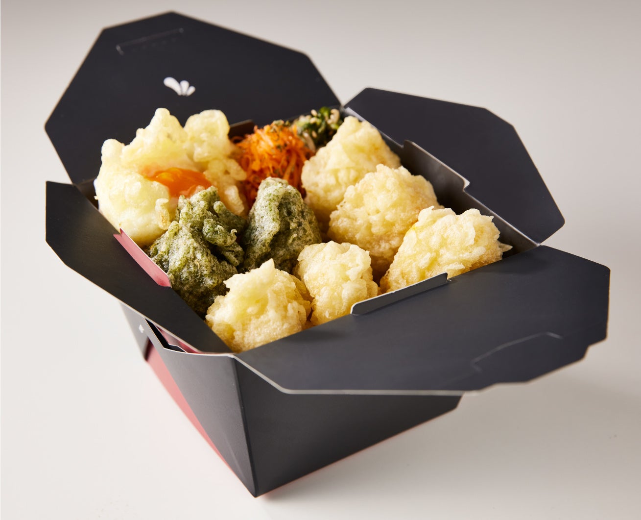 『天ぷら 新宿つな八』で長年培われた揚げの技を駆使し調理された鶏天は、鶏むね肉の柔らかさを残しつつ、衣のサクサクとした歯触りを楽しめる逸品です。上品さと親しみを感じられる淡いきつね色に仕上げ、素材の旨味を引き出しながら、天ぷらや唐揚げにはないヘルシーさを実現しました。