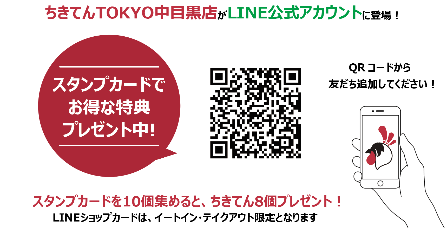 ※公式LINEアカウント「ちきてんTOKYO中目黒店」の友だち登録が必須となります。