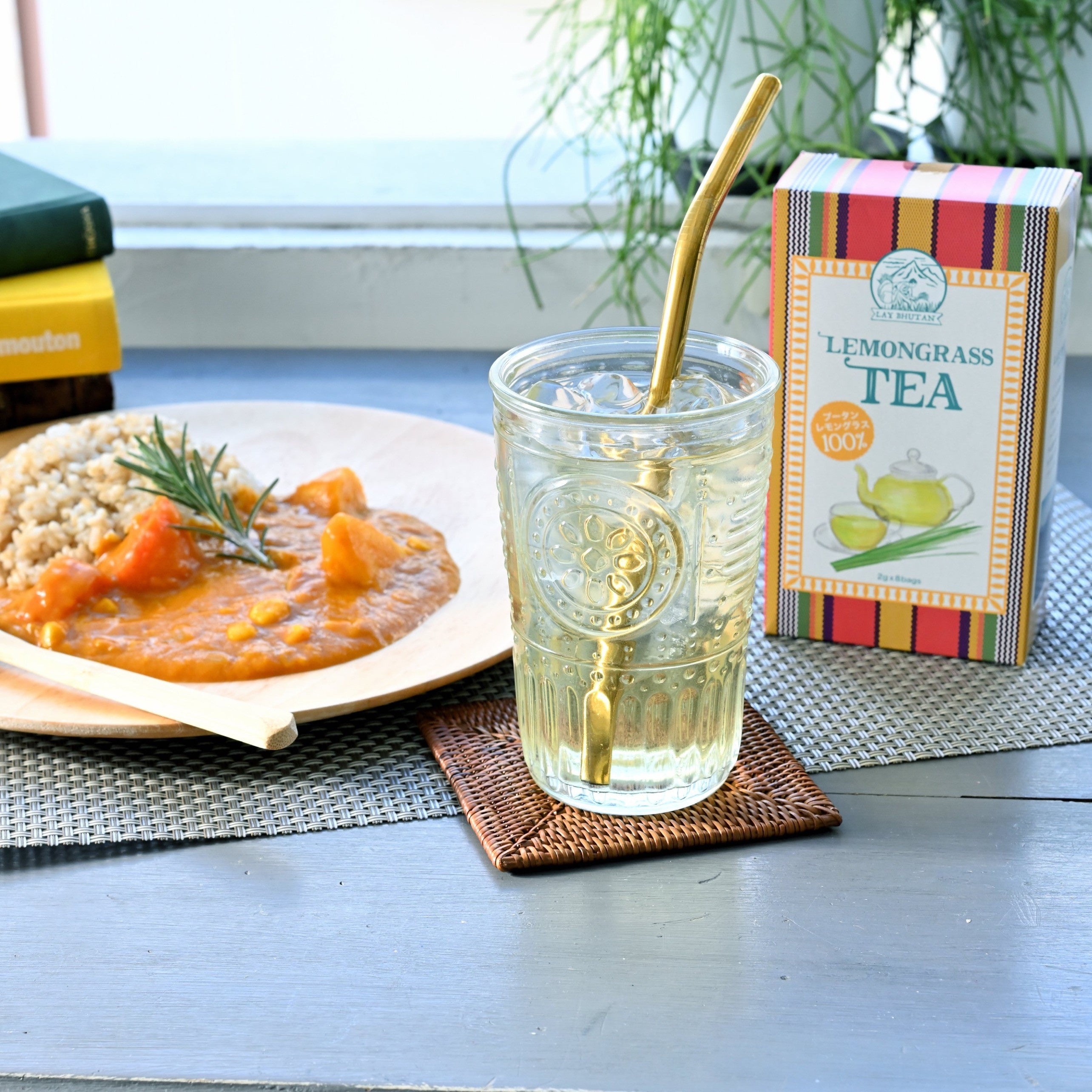 標高2,000メートルから3,000メートルの山に農家の方々が分け入り、手摘みで収穫した貴重なレモングラスを日本でお茶に加工しています。ブータンに自生する固有のレモングラス種で、淹れた時の濃いイエローと香り立ちが特徴です。カフェインレスなので飲みやすく、アイスティーで頂くのもお勧めです。