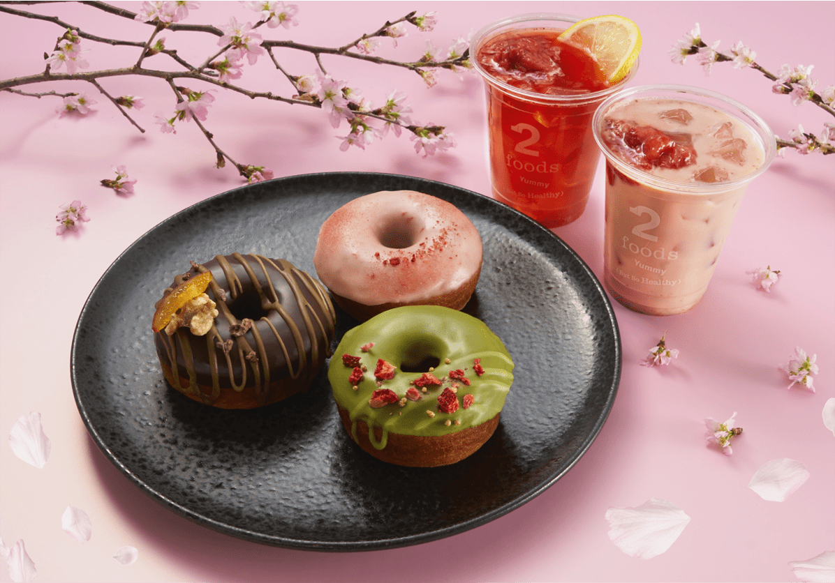 株式会社TWO(本社:東京都渋谷区/代表取締役CEO 東 義和)が手掛ける、“ヘルシージャンクフード” をコンセプトとしたプラントベースフードブランド「2foods」(トゥーフーズ)は、2022年3月1日(火)より、春の味覚が楽しめるドーナツの新商品3種「桜ドーナツ」「抹茶ストロベリードーナツ」「ほうじ茶チョコレートドーナツ」と、ドリンク2種「ストロベリージャスミンティー」「ストロベリーオレ」、オリジナルサラダ2種「春野菜のクリーミーシーザーサラダ」「ソイミートバンバンジーサラダ」を発売します。
