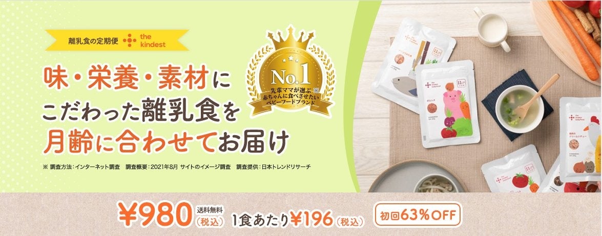 「かんでん暮らしモール」では、「どこに頼めばよいかわからない暮らしのお困りごとを解決する!」をコンセプトとしており、これまで知育玩具や子供服の販売・買取サービスなど子育て分野におけるサービスの拡充を行ってまいりました。この度、乳幼児のお子さまの食事や栄養に関するお悩み・お困りごとにお応えするべく、離乳食の定期便サービス「the kindest」(カインデスト)の提供を開始いたしました。