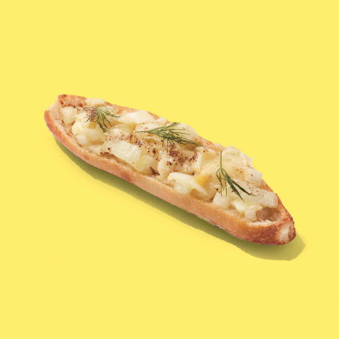 パルメザンチーズの塩気と新玉ねぎの甘みがマッチした旬のタルティーヌです。