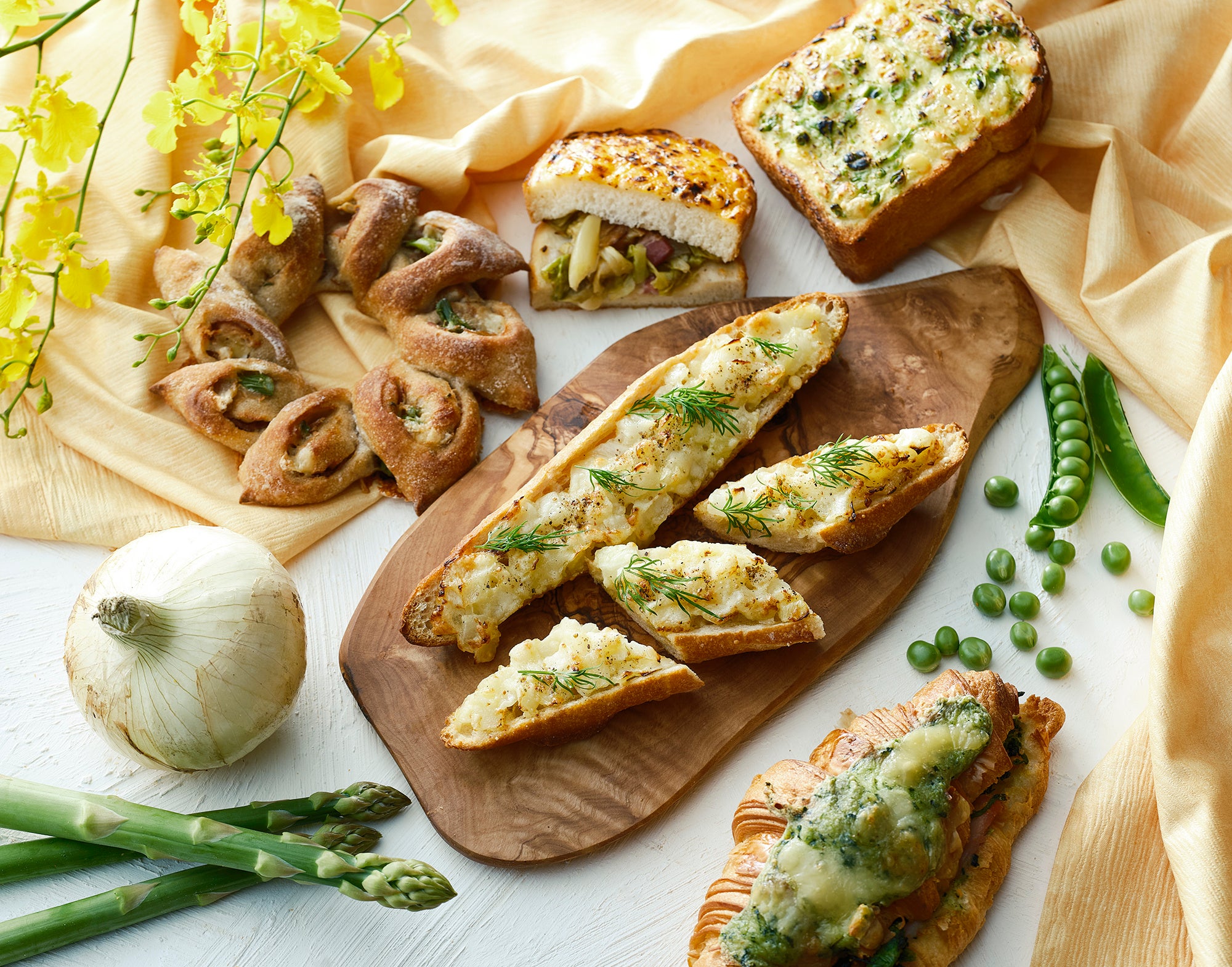 今回は、食感と香りが良い「春野菜」のフレッシュな魅力をふんだんに生かした新作が登場。毎年定番の「新玉ねぎのタルティーヌ」「菜の花のクロックムッシュ」の他、BOUL’ANGEで人気の食パン「ハニーブレッド」を使用したクロックムッシュ2種とエピが新たにラインナップに加わります。