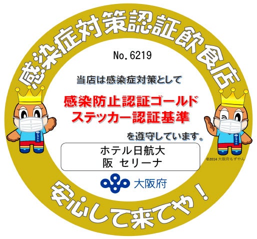 ホテル日航大阪では衛生ガイドラインに基づき、安心してご利用いただけますよう様々な対策をおこなっております。マスク着用、入店時の検温、アルコール消毒液による手指消毒、ソーシャルディスタンス確保、マスク会食、ブッフェご利用時の手袋着用、少人数でのご利用など、皆様のご理解とご協力を何卒お願い申し上げます。