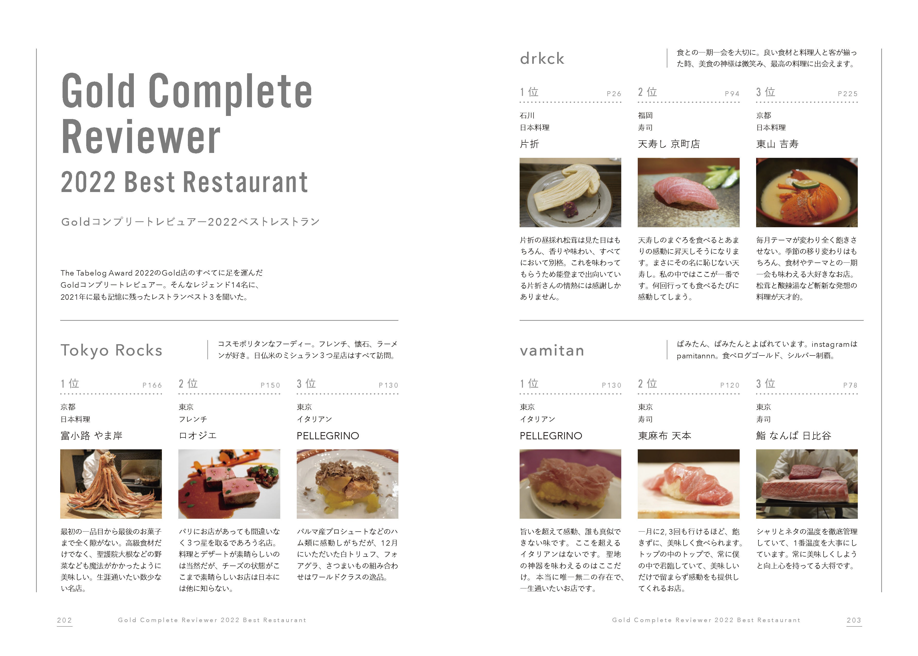 有名レビュアーがひしめく中でも、 2021年の「Gold」全店舗に足を運んでいる14人が登場! それぞれが選ぶベスト3のお店、そしてノミネートされなかったものの、素晴らしい一押しレストランを発表していただきます。