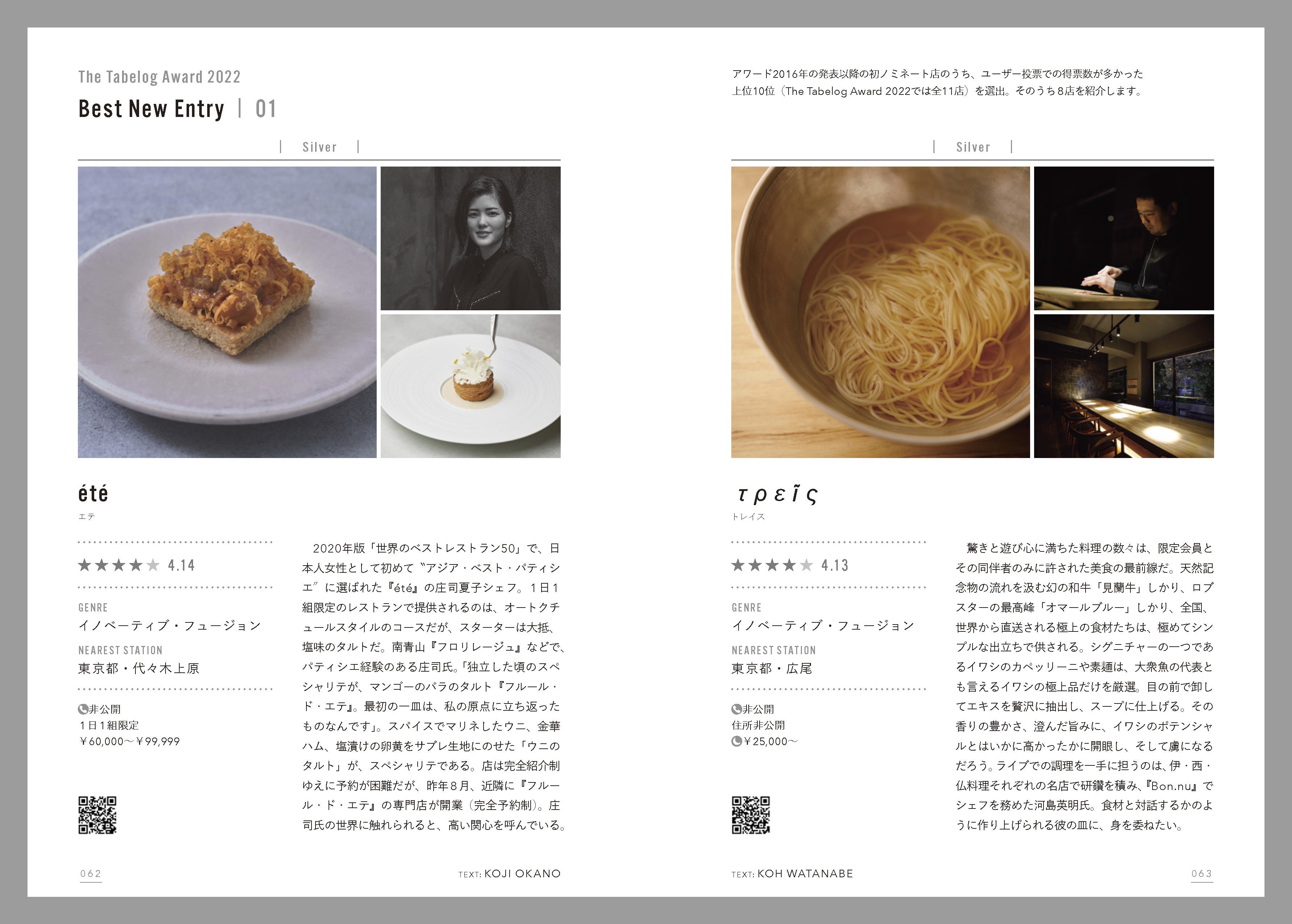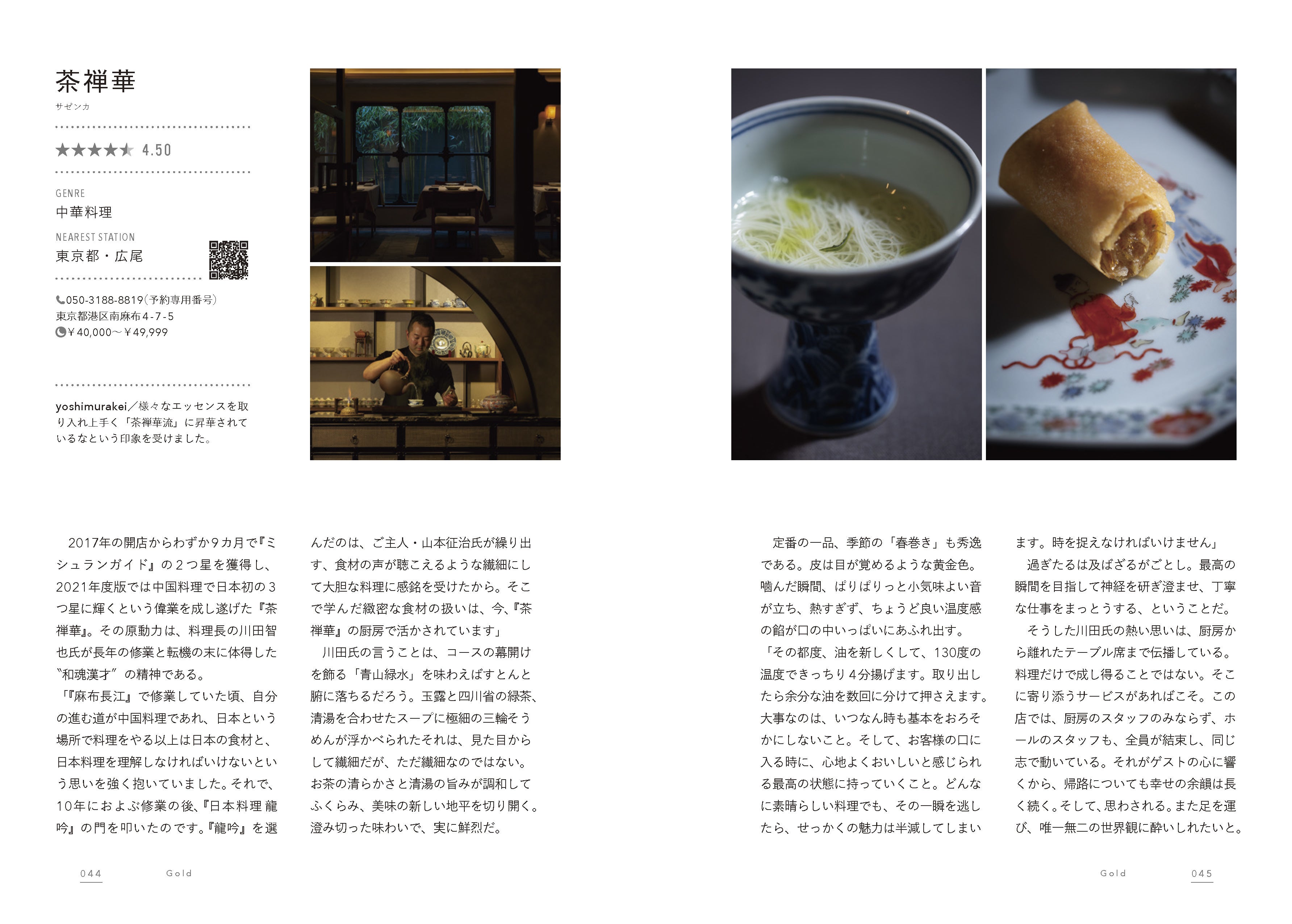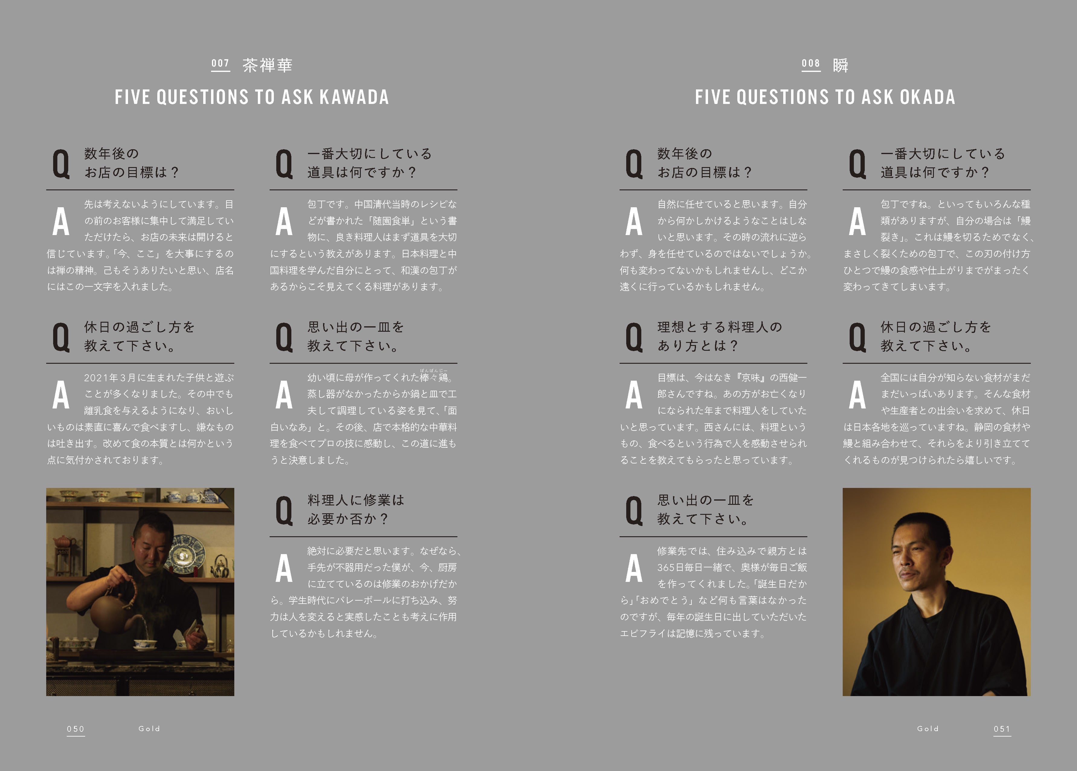 特に「この国のどこにあったとしても、生涯通い続けたいお店」と位置付けられる「Gold」 受賞店については、お店のスペシャリテをはじめとしたシズル感溢れるビジュアルと、料理人へのインタビューをたっぷりと盛り込んで紹介。