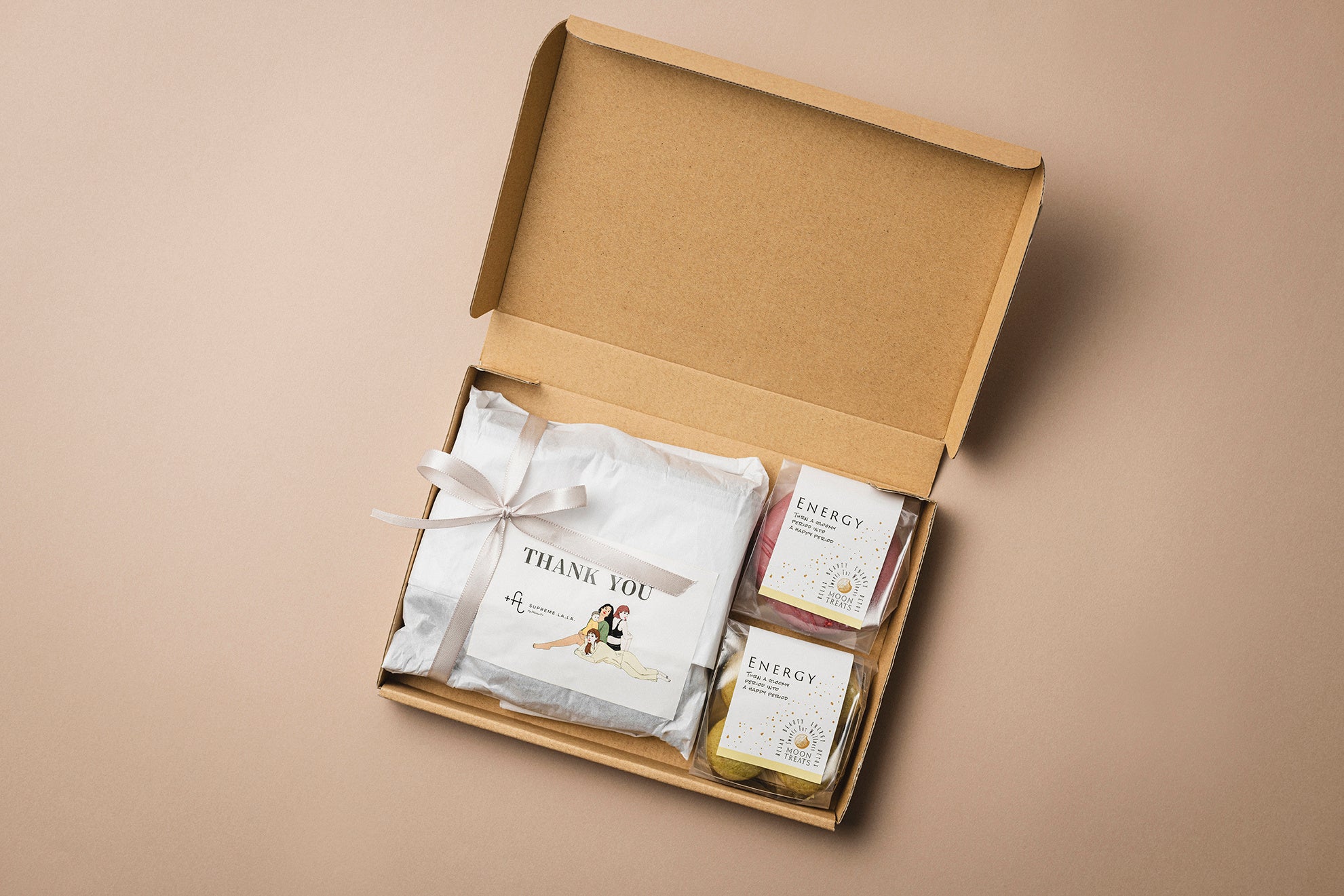 1人1人に必要な栄養素が詰まったヴィーガンスイーツを毎月生理周期に合わせお届けする、パーソナライズ・サブスクリプションサービス「MOON TREATS(ムーントリーツ)」を提供する、株式会社eminess(東京都渋谷区、代表取締役:小松 佐保)は、3月8日の国際女性デーを記念し、独自開発したフェムテック商品を展開するアパレルブランド「+FT SUPREME.LA.LA.」とのコラボBOXを発売します。