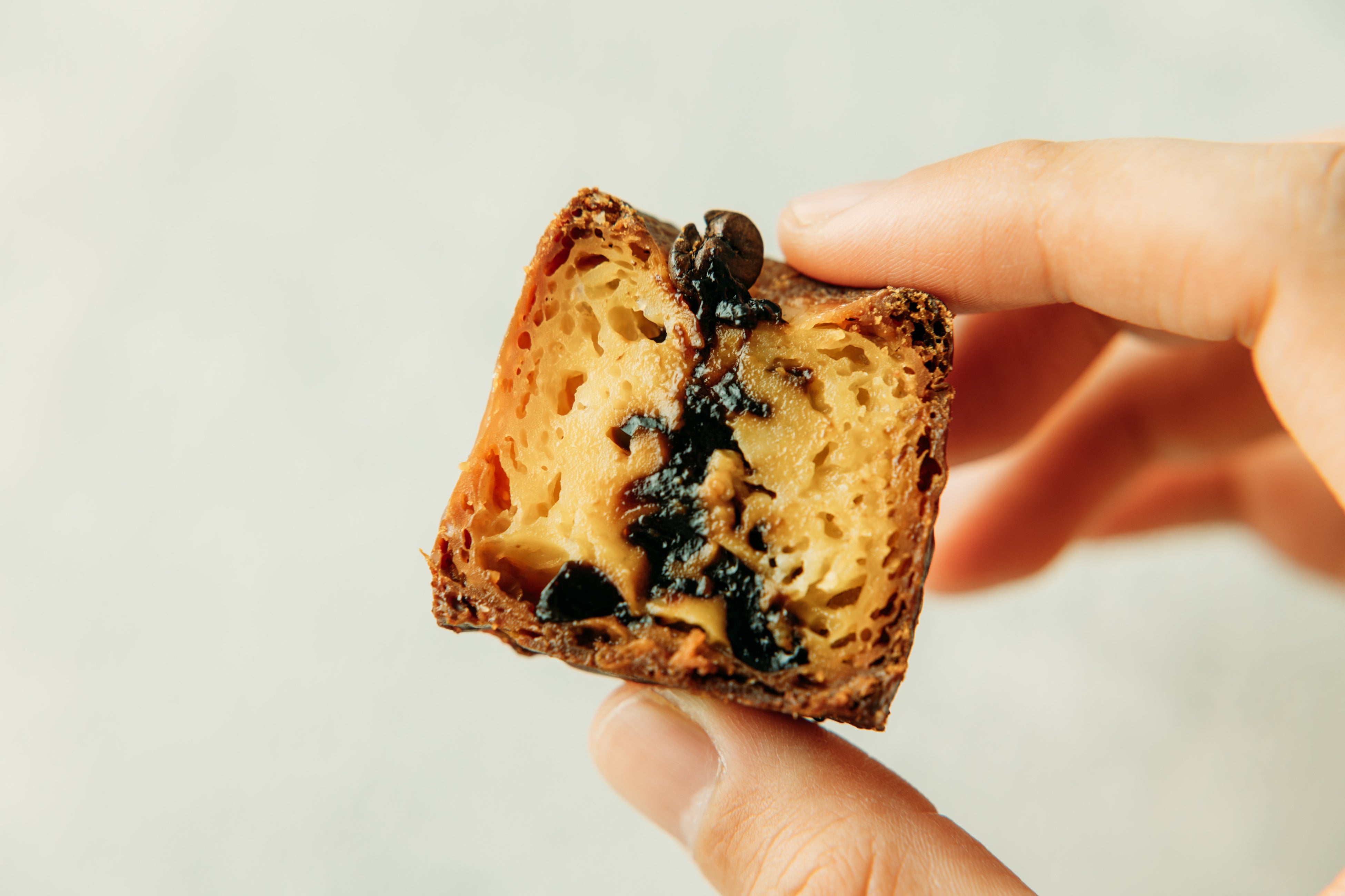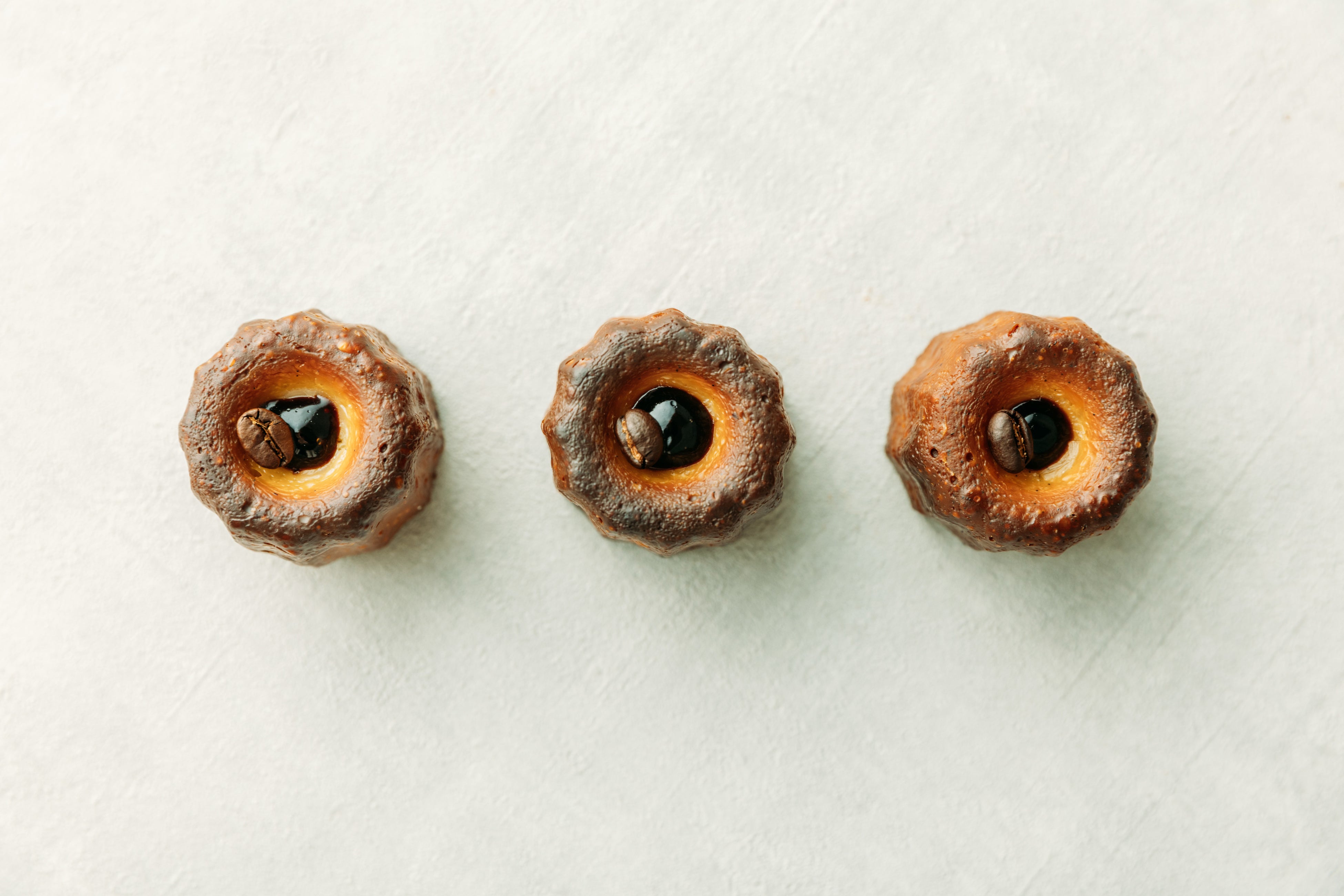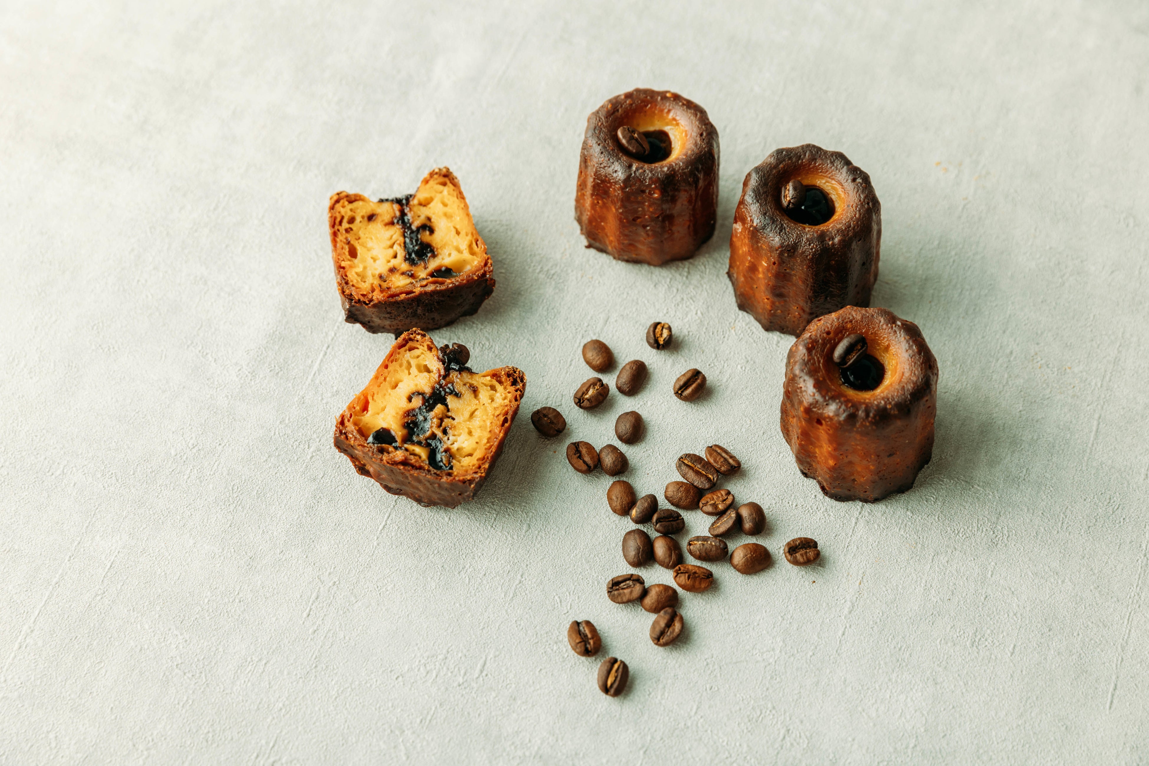 「オリジナルコーヒーカヌレ」は、シンプルながらバニラの優しい甘さが心地良く楽しめる「GINZA Corridor Cannelé」と同じレシピを生地に採用し、そこに「JOE TALK COFFEE」こだわりのエスプレッソを贅沢に使用した濃厚なコーヒークリームを流し込みました。深煎りコーヒーの香りとコク、そしてビターで大人の上品な味わいを引き出します。