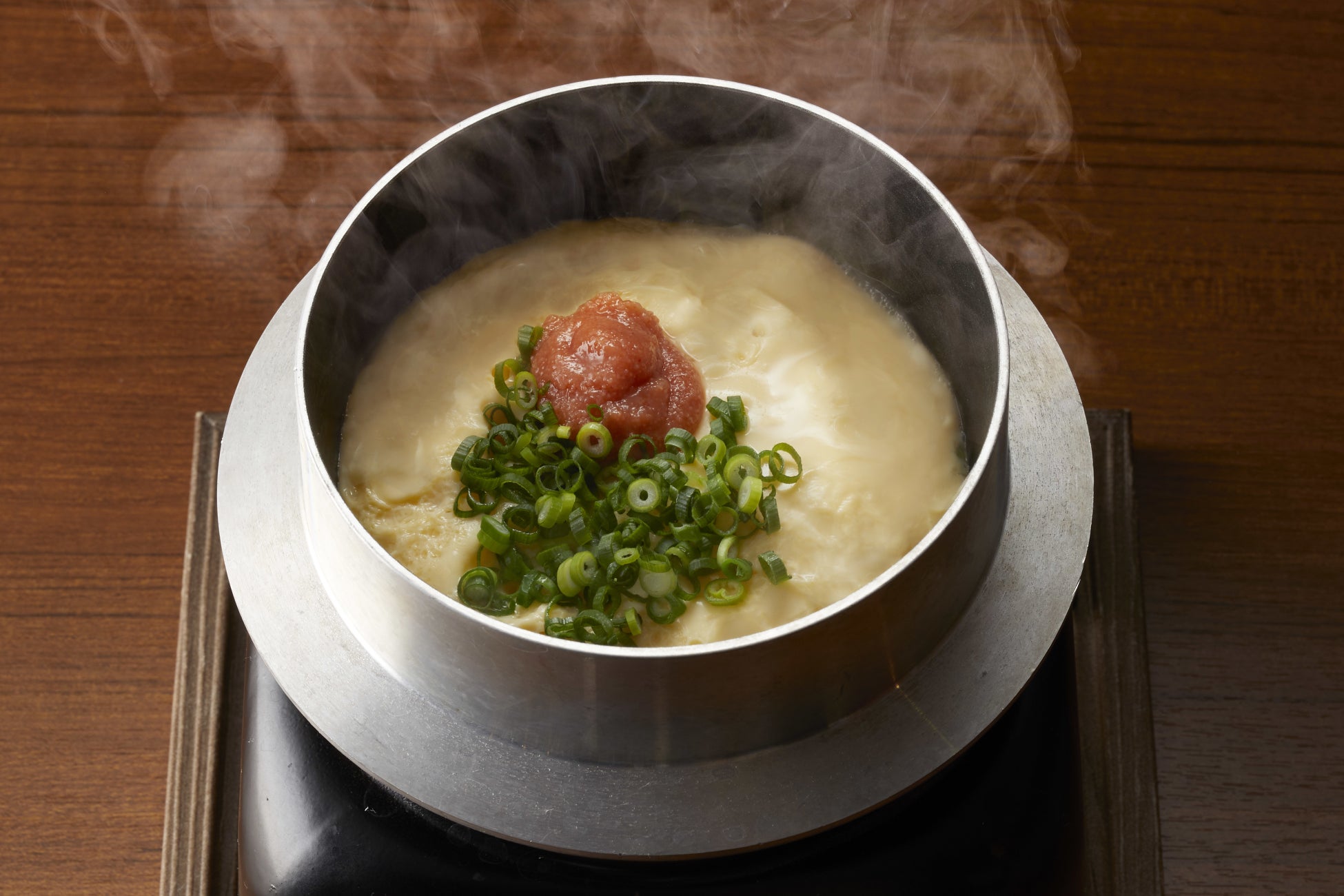 『ふわふわ釜たまご』は、卵の白身と濃厚な黄身のハーモニーを感じる抜群の一品。この「やわらかさ」を一度体験してしまうと、もう忘れることはできません。この度「プレーン」と「明太子」の2種類をご用意しました。「プレーン」は卵の上にネギのみ、「明太子」は卵の上に明太子とネギを後乗せします。明太子やネギをふんわり食感の卵と混ぜ合わせれば、今までにない味わいと風味を満喫できます。