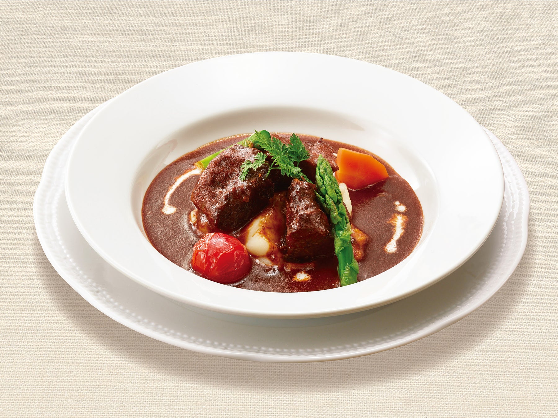 1970年代のレシピを再現。肉と野菜をよくソテーしてブイヨンと赤ワインでじっくり煮込んだビーフシチューです。旨みがしみ込んだ柔らかいビーフの醍醐味を、春を感じるアスパラガス、キャロット、トマトなどの彩り野菜、ビーフシチューと相性の良いマッシュポテトとご一緒にお楽しみください。