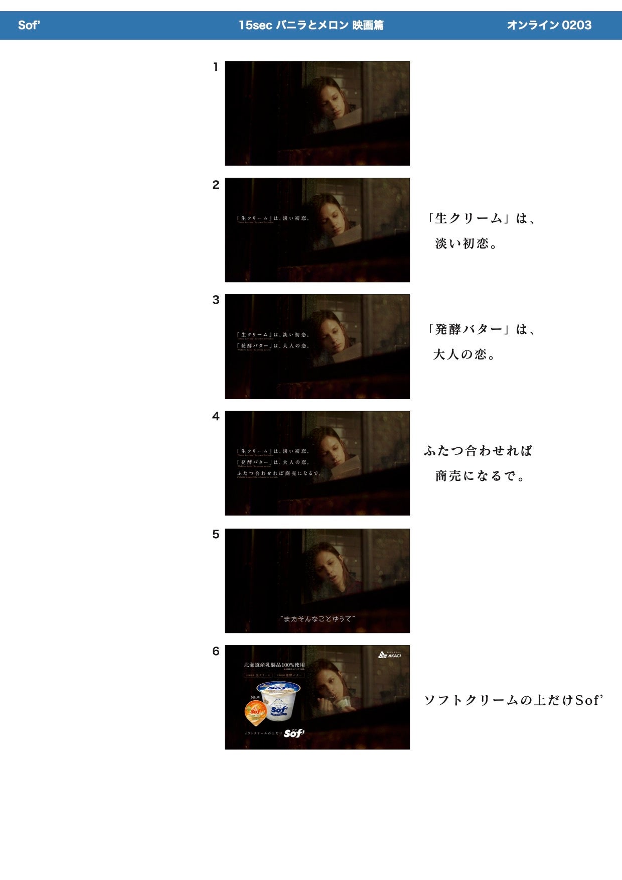 ■新CMストーリーボード 【Sof’(ソフ)「映画篇」15秒】