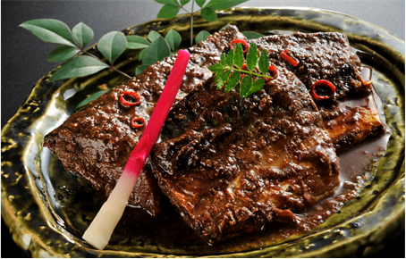 江戸時代より北九州小倉地域にある伝統郷土料理です。代々伝えられてきた家宝とも云える「熟成ぬか床」を使って、鮮度のよい青魚を長時間煮込んで仕上げたものです。
