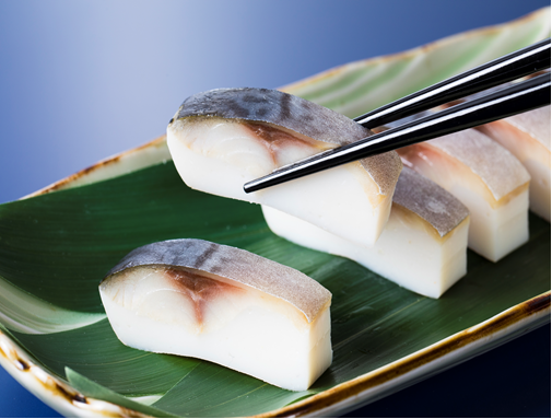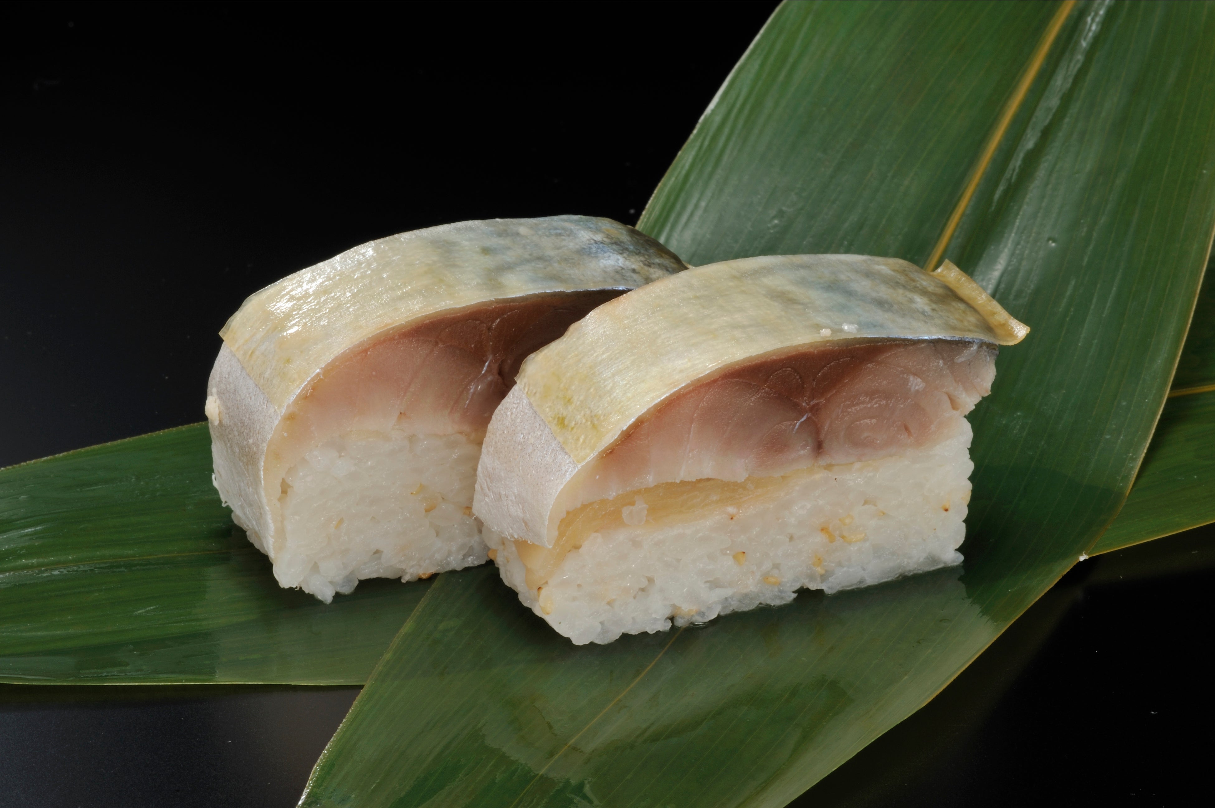 身厚のなつ香サバを甘酢生姜と白板昆布で上品に仕上げたしめ鯖寿司。