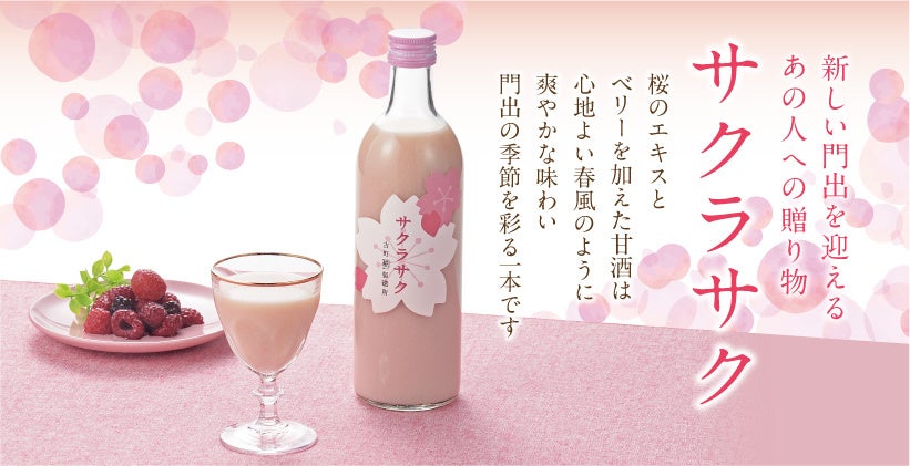 お米と米糀から作られるノンアルコールの糀甘酒に、桜のエキスとラズベリーのパウダーをブレンドしております。華やかな香りと心地よい酸味の味わいは、満開の桜並木を吹き抜ける心地よい春風を思わせる商品です。