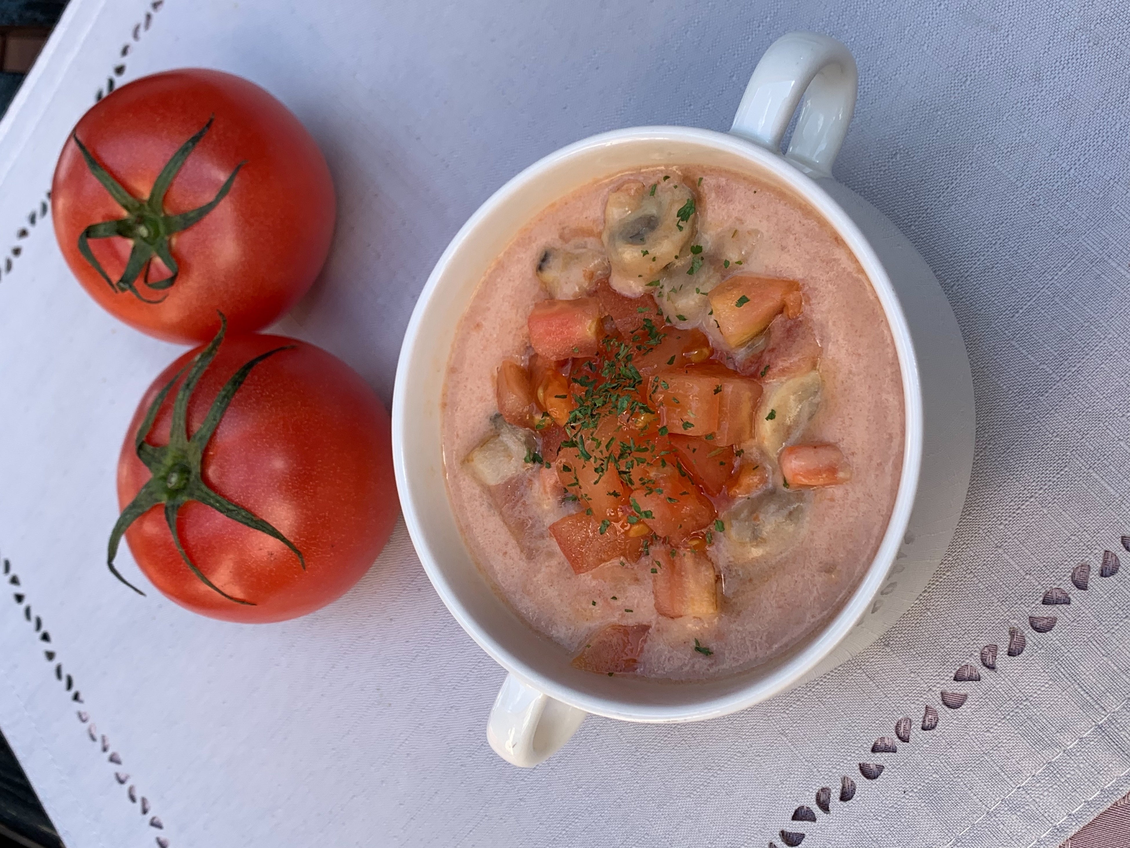 まだまだ寒さが続くこの時期に、体の中から温まる貝とトマトのスープはいかが?