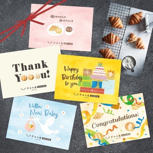 誕生日、出産祝い、お礼など様々な目的でお使いいただける、グリーティングカードや、熨斗(のし)を無料でお付けできます。お気に入りのパンと一緒に素敵なカードを添えて日頃の想いを伝えませんか。