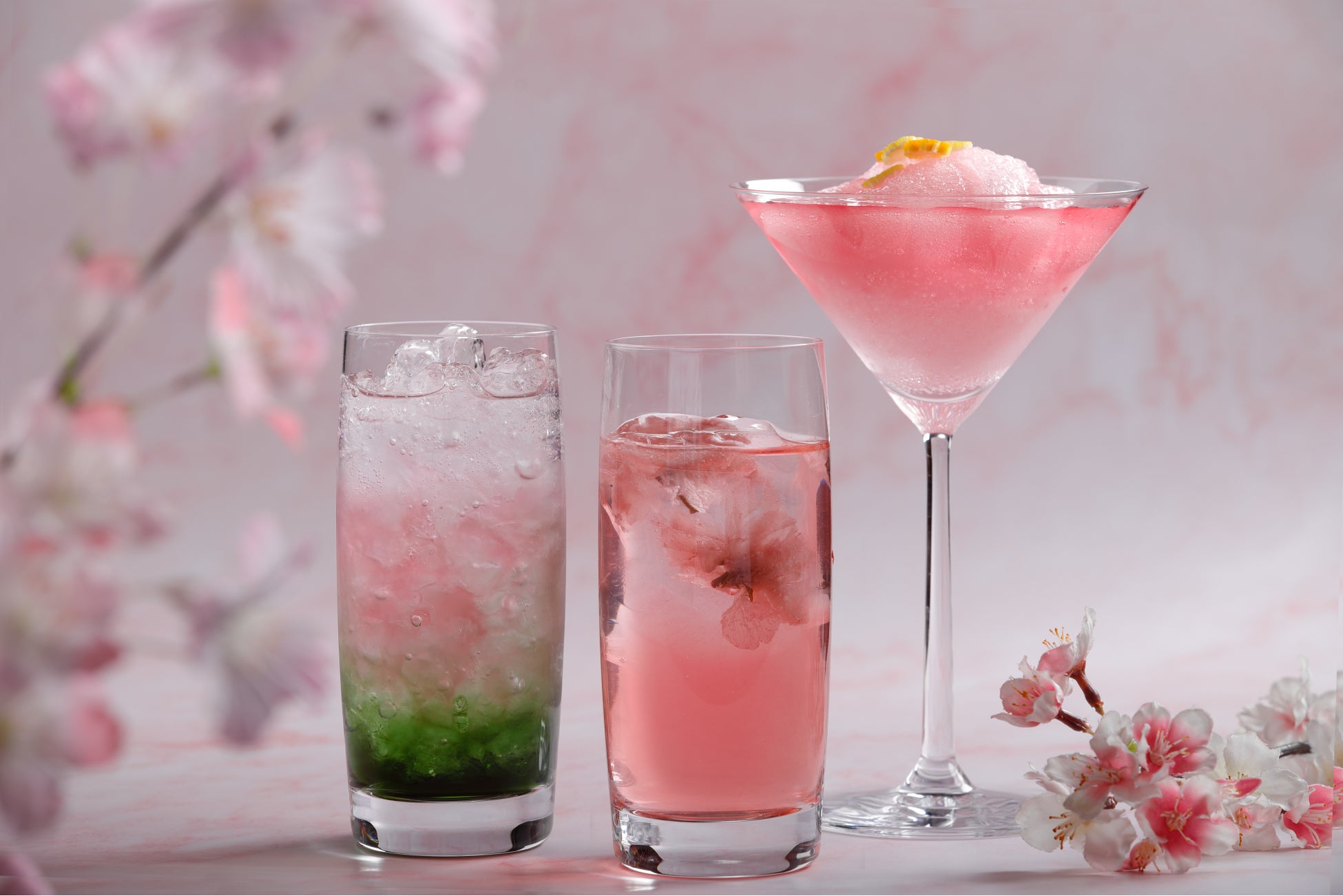 ジャパニーズクラフトリキュール「奏 Kanade<桜>」をベースに桜の花びらをあしらい、満開の桜をイメージ