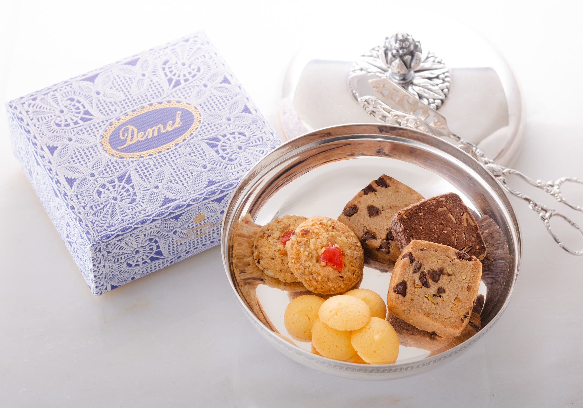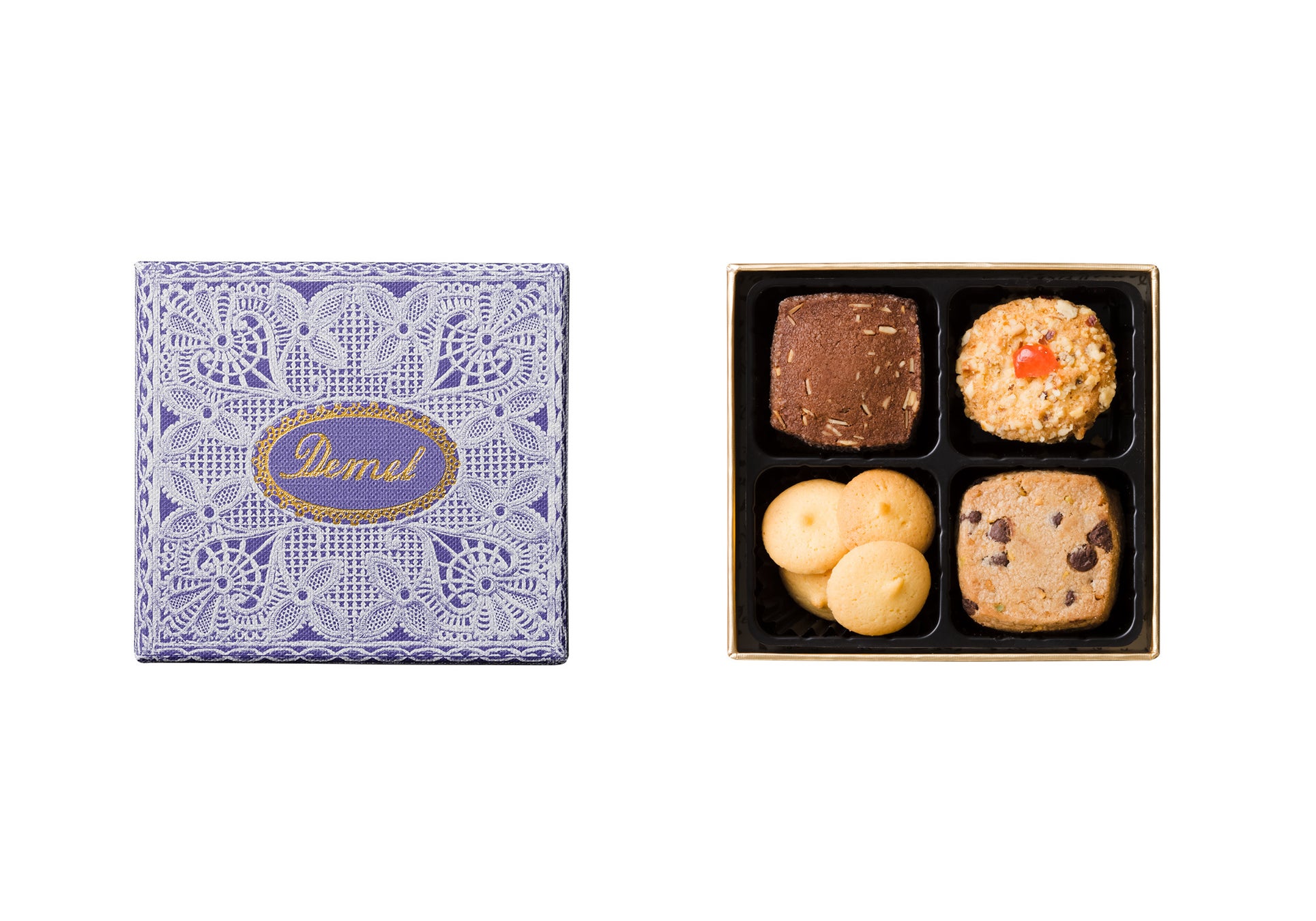商品特長:デメル人気のクッキー4種を、可憐なレース模様の限定パッケージに詰め合わせました