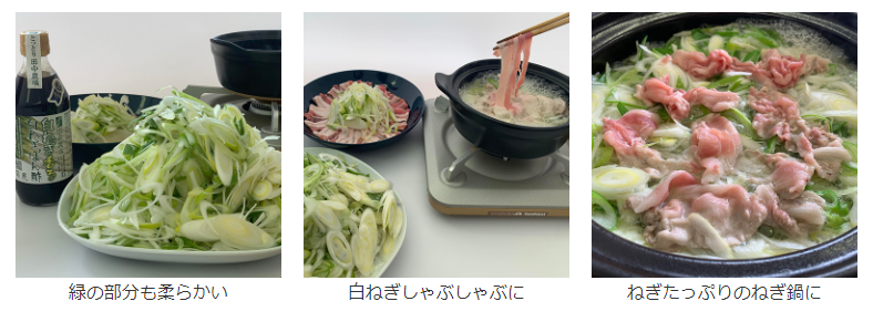 「白ねぎ鍋セット」の下ごしらえは、白ねぎのカットだけ!白ねぎの葉(緑)の部分も美味しく召し上がれます。白ねぎと白ねぎぽん酢のセットをお届けいたしますので後は豚肉さえあればOK!