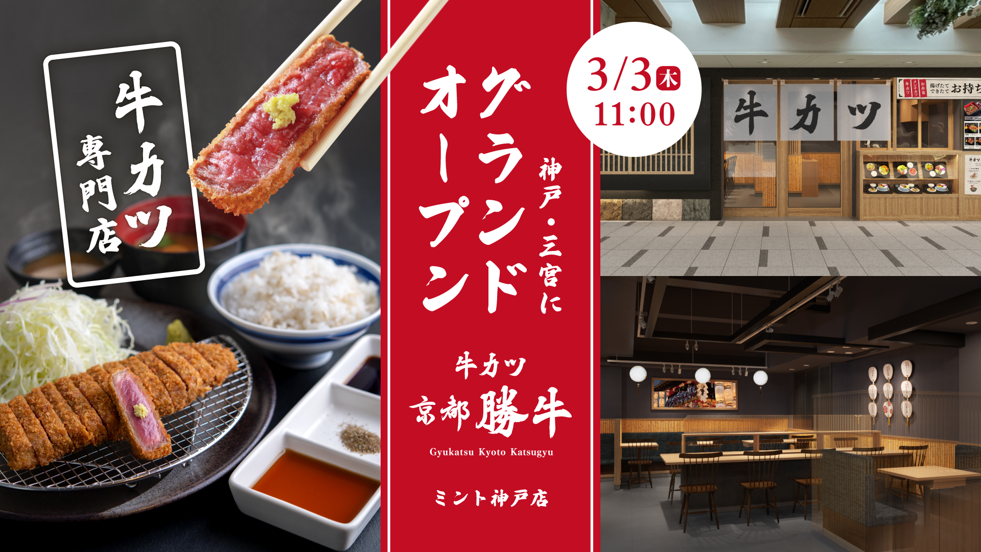 国内外100店舗超の飲食店を経営する株式会社ゴリップ(本社:京都府京都市)は、2022年3月3日に「牛カツ京都勝牛 ミント神戸店」をグランドオープン致します。京都勝牛は2022年現在、国内50店舗以上、海外4拠点に20店舗以上を展開する日本一、世界一の牛カツ専門店です。