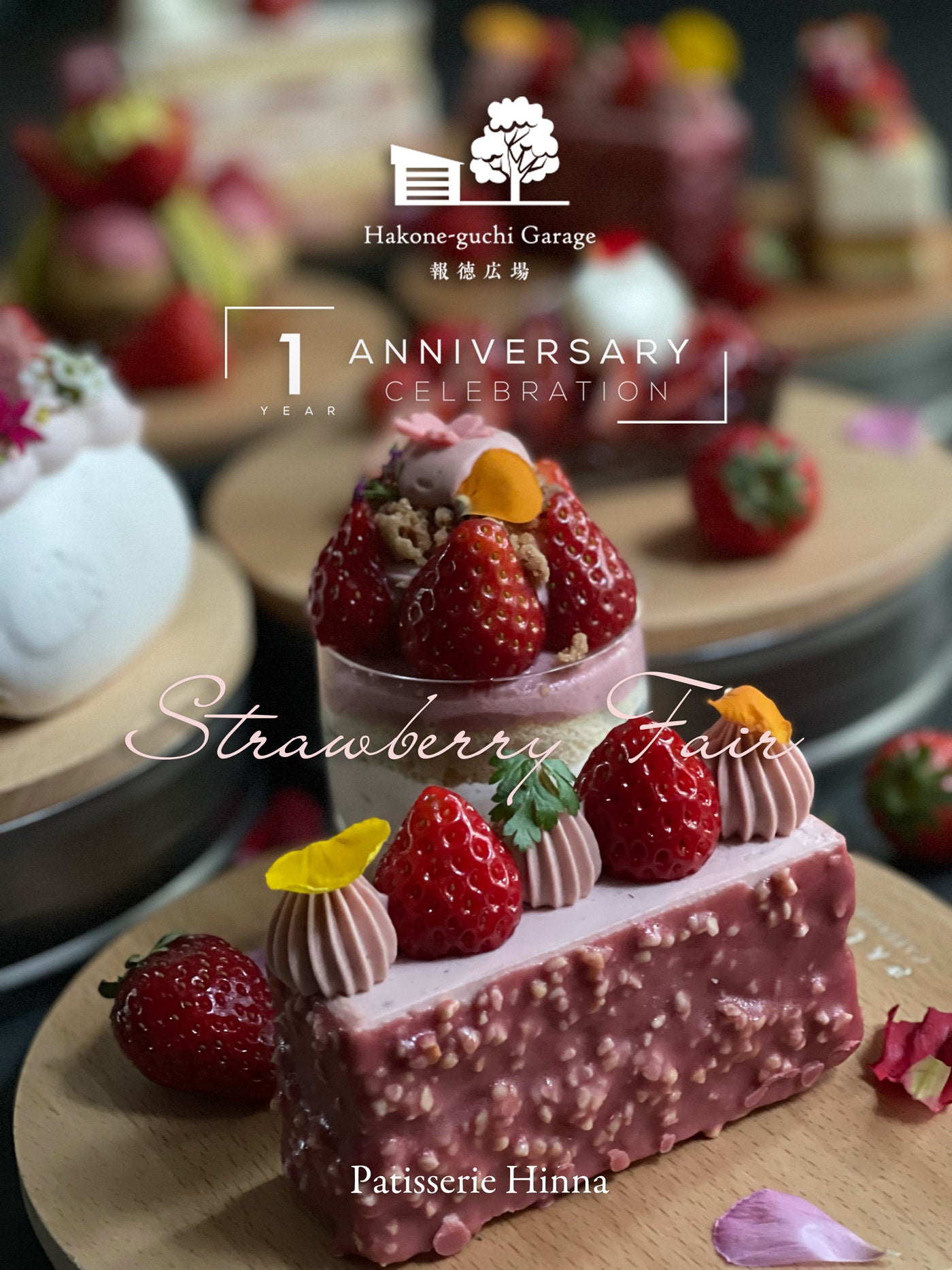 箱根口ガレージ報徳広場(報徳仕法株式会社:神奈川県小田原市南町、代表取締役:草山明久)は、施設の開業1周年を記念して同店のパティスリーにて「ストロベリーフェア」を2022年3月1日(火)より開催いたします。期間中は地元で栽培される小田原のイチゴを主役にして、エグゼクティブシェフ・パティシエ有野孝がバラエティに富んだ多彩なケーキをご提供すると共に、地場食材である小田原産イチゴの宣伝にも努めます。