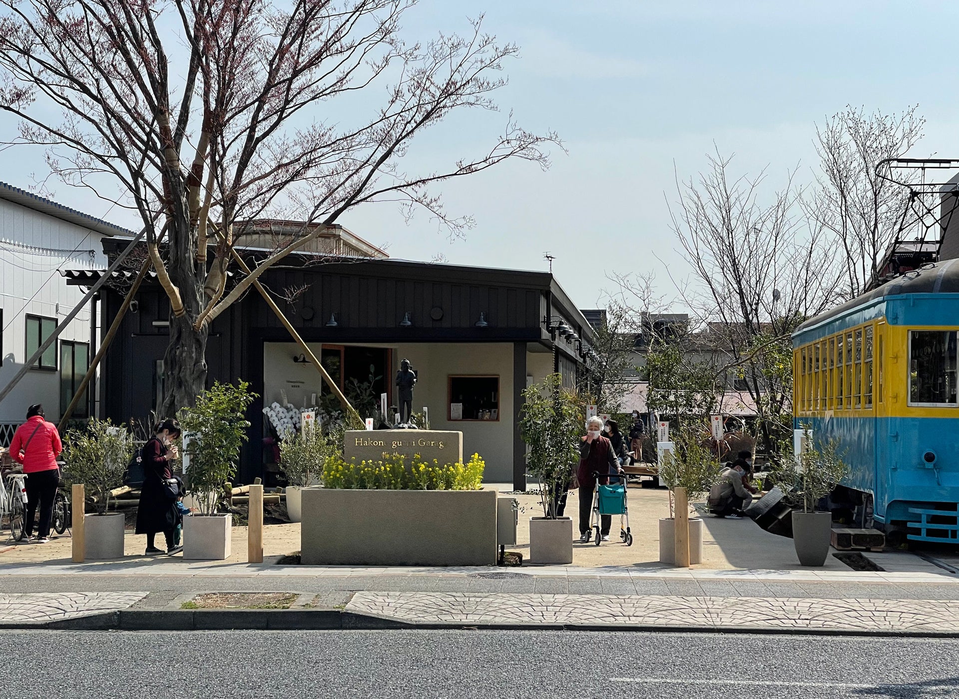 国道入口にはかつての路面電車モハ202号も展示されており、庭には昔懐かしい素朴な風景が広がります。
