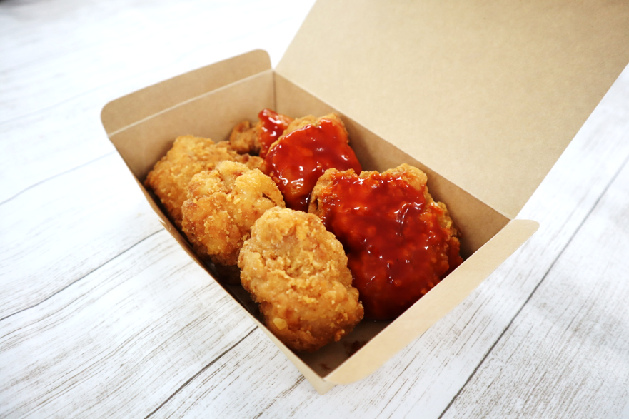 ▲ガツンと国産鶏ムネ唐揚げ3個+ガツンと国産鶏ムネ唐揚げ使用!ヤンニョムチキン3個 600円(税込み)