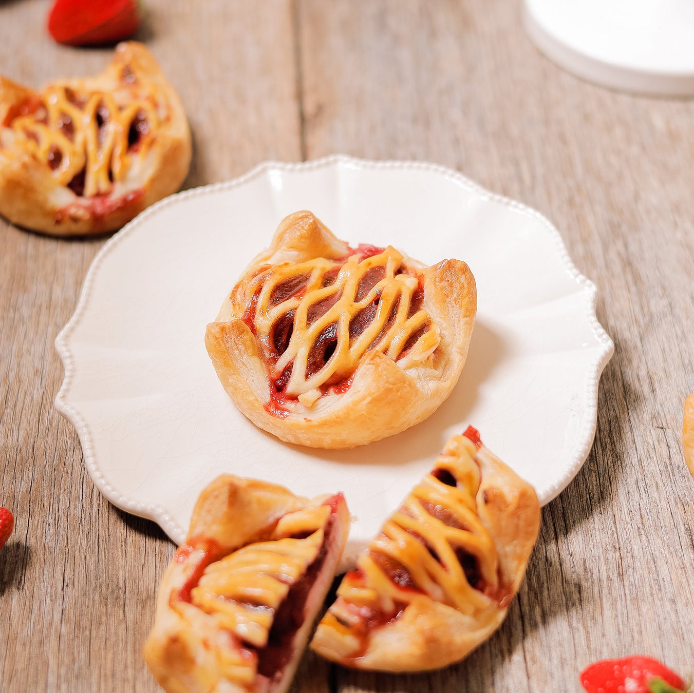 いちご・いちごジャム・チーズクリームを包んで焼き上げたパイです。