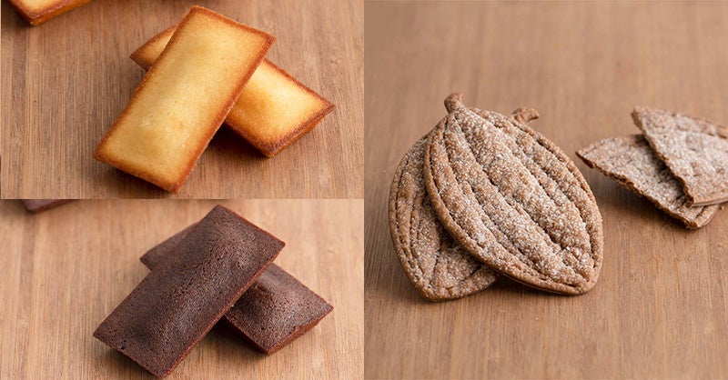 リッチな⾹りでしっとりとした⾷感のフィナンシェ。焦がしバターとアーモンドの⾵味がダイレクトに楽しめる「プレーン」と、フランス産の最⾼級カカオパウダーを加えた「ショコラ」の2つの味をお楽しみいただけます。