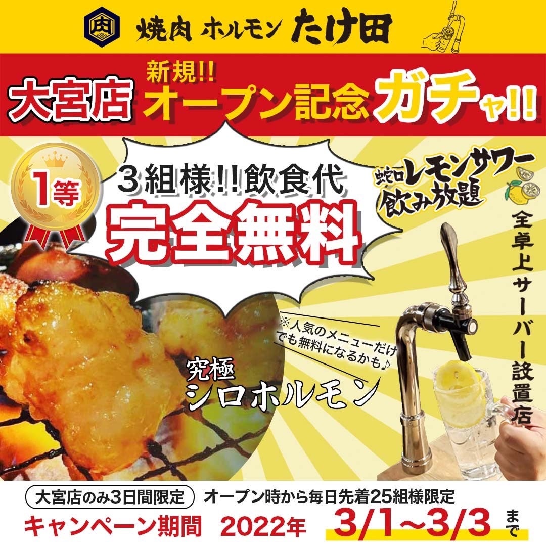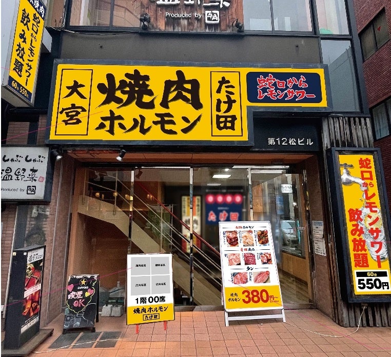 この度、埼玉県最大のターミナル駅である大宮駅徒歩5分のロケーションに『焼肉ホルモンたけ田』大宮店を、神奈川県・橋本駅前すぐ、徒歩1分のアクセスの良い場所に『焼肉ホルモンたけ田』橋本店を出店いたします。