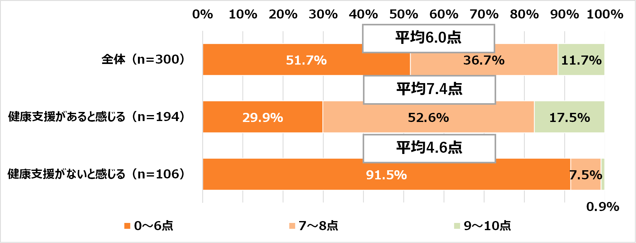 ※健康支援の取り組み(Q7)で0~6点を「健康支援がないと感じる」、7~10点を「健康支援があると感じる」として集計