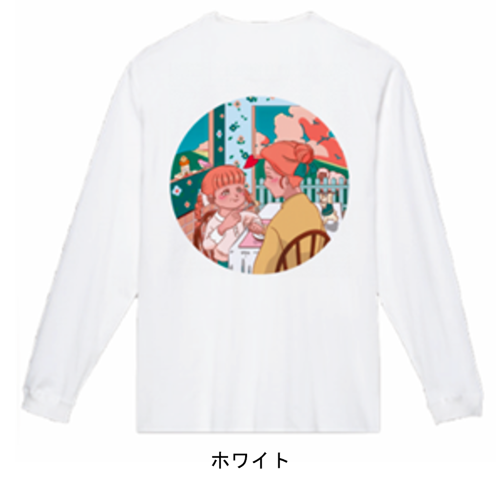 CDジャケットやイベントのフライヤーなども手がける大注目イラストレーター「Suica」さんが「ママのチーズケーキ」を食べた瞬間、脳内に広がった光景を描いていたロングTシャツです。