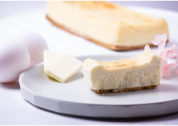 なめらかでクリーミーなクリームチーズとサワークリームをメインに、生クリームときび砂糖を使用しております。口溶けをよくするために湯煎でじっくりと溶かし、とろける食感を実現するために湯煎焼きしています。お年寄りから小さな子どもまで食べられるよう、レモン/香料は使っておらず、チーズケーキ本来の酸味と優しい甘さで仕上げました。とろける食感と、アーモンドを加えたクッキーのさくさく感のハーモニーをお楽しみください。