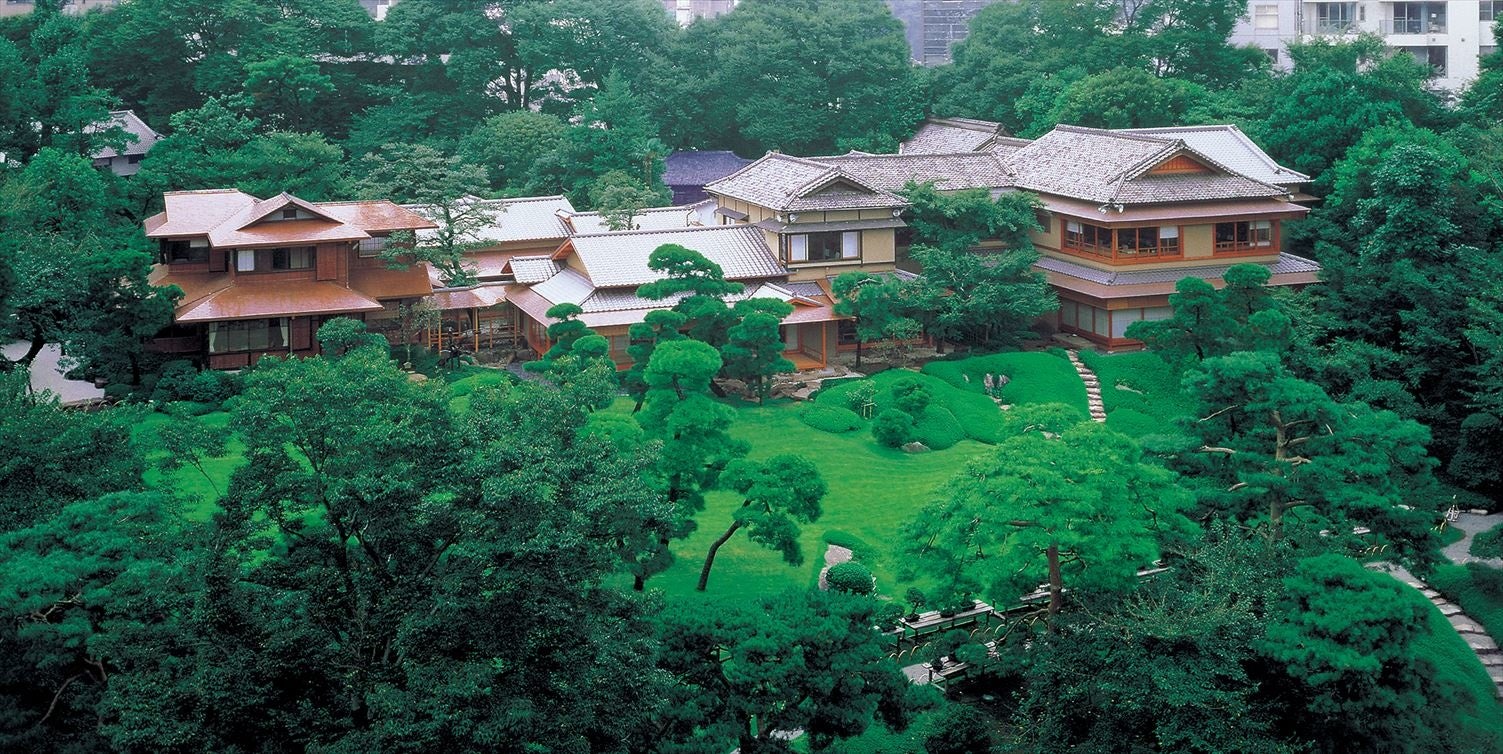 1950年まで、実業家 久原房之助氏の私邸として使われていた歴史ある数寄屋造りのこの場所は、どの部屋からも四季折々の美しい庭園の景色を望むことができる、秀逸な眺望をお楽しみいただけます。