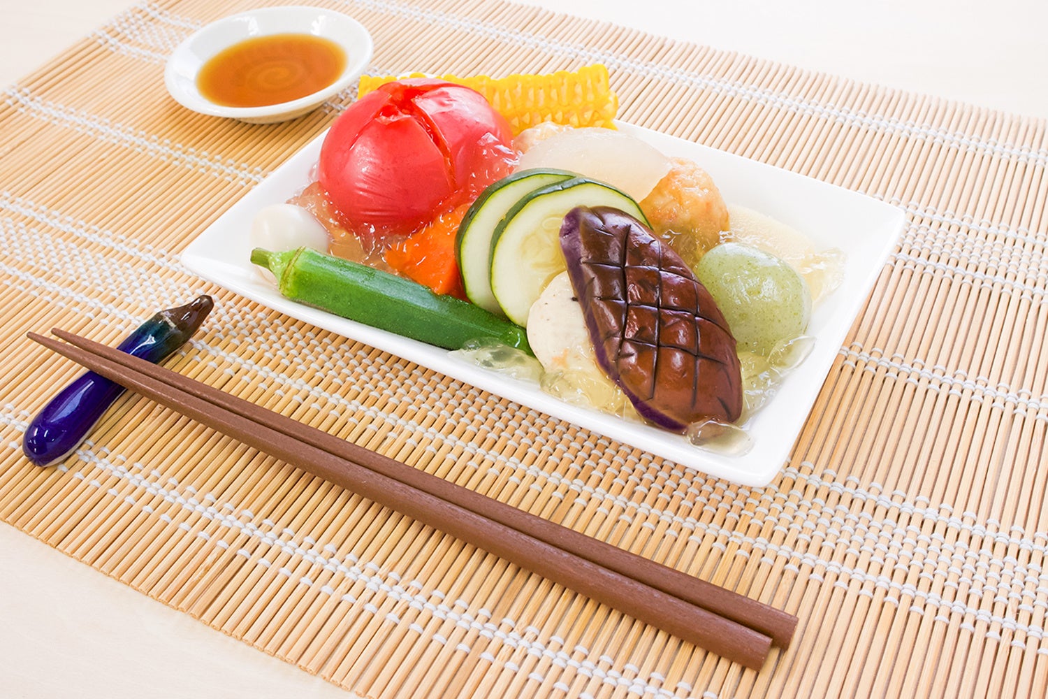 暑い季節に涼を楽しむ、冷やして食べるジュレ仕立てのおでんです。