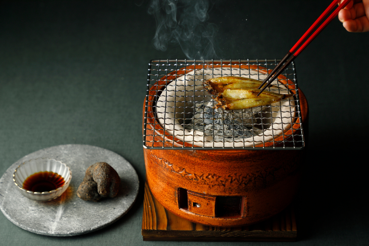 そして、メヒカリ開き干しのサンプルを持ち込み、いろいろな調理を試してもらった中に、 秘伝のトリュフ醤油を合わせて焼いたものがありました。