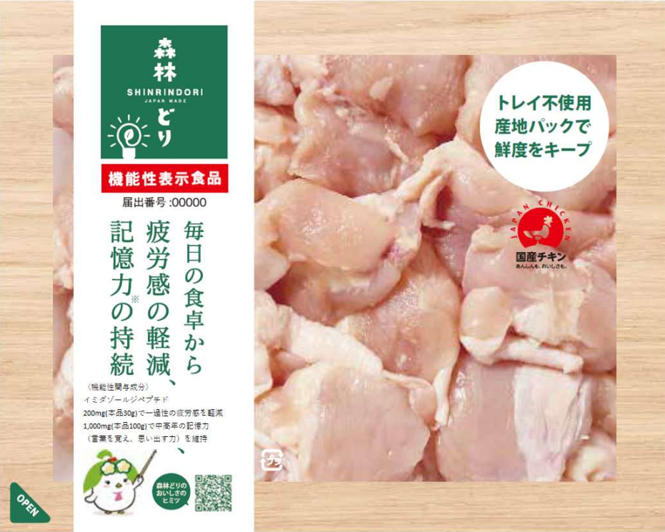 旨みが強くジューシーな味わいの国産ブランド鶏「森林どり」を生産販売している株式会社ウェルファムフーズ(本社:東京都千代田区、代表取締役社長:野村 和伸)は、「宮城県産森林どり むね肉」と「宮城県産森林どり ささみ」が、“イミダゾールジペプチド”を関与成分とした「疲労感の軽減」と「記憶力の維持」で機能性表示を取得したことをお知らせいたします。