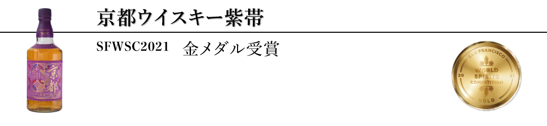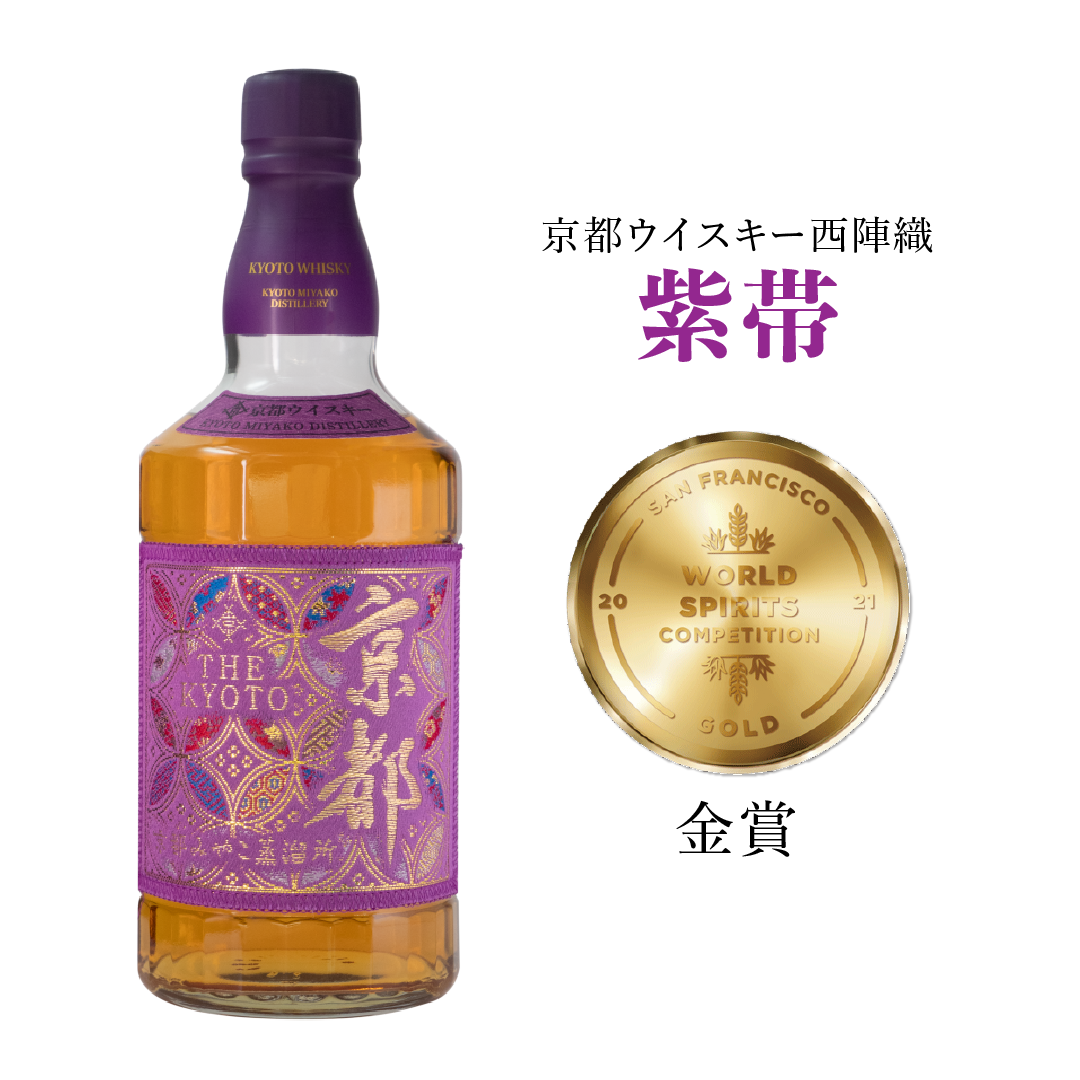 京都酒造株式会社(以下、京都みやこ蒸溜所 所在地:京都府船井郡京丹波町、代表取締役:豊田和也)は、アメリカで開催された世界三大酒類コンペティション(品評会)といわれる、SFWSC(サンフランシスコ・ワールド・スピリッツ・コンペティション) 2021において、京都ウイスキー西陣織紫帯が金メダルを受賞しました。