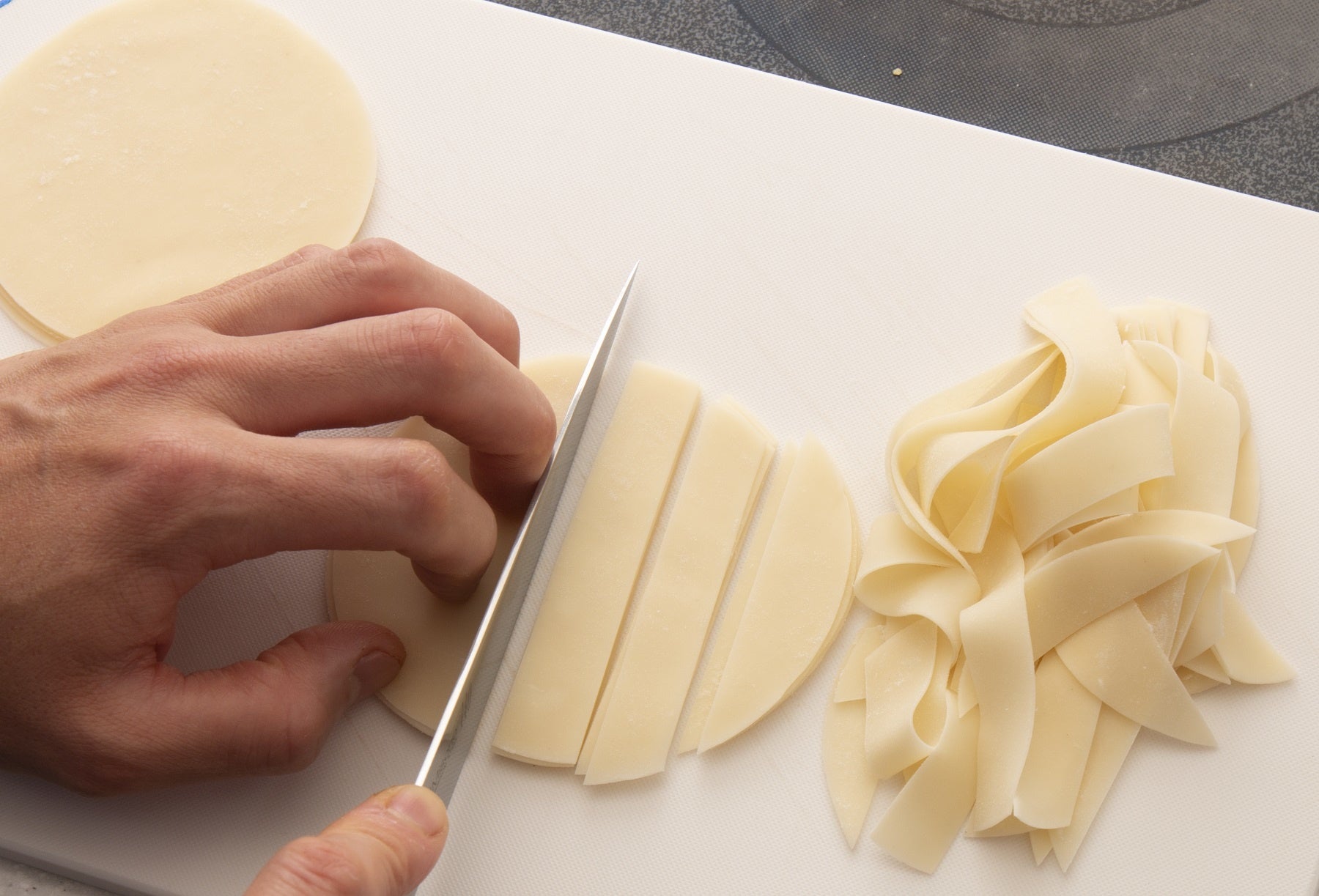 作るのが大変な手打ちパスタは、餃子の皮で代用。