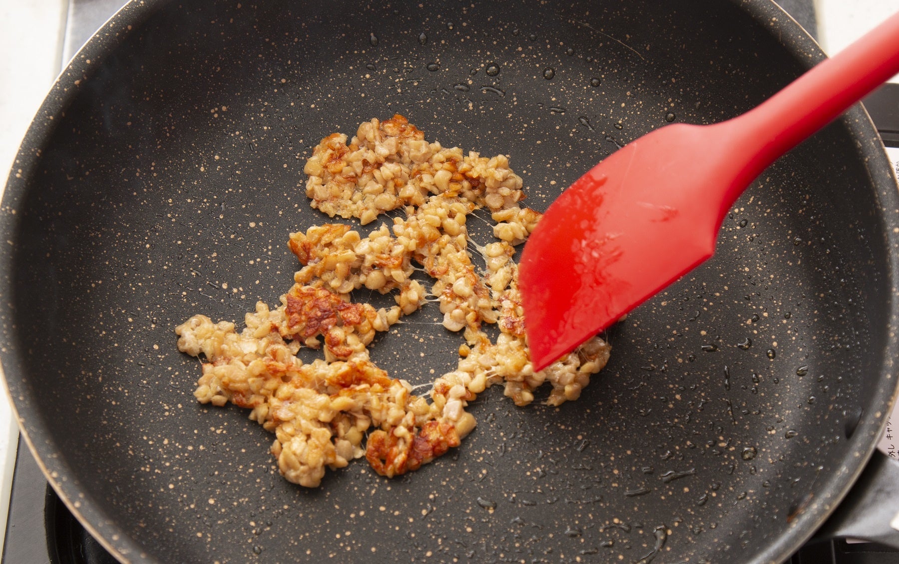 家でプロ級のミートソースの味が楽しめる画期的な方法が「納豆」を使うこと。納豆のネバネバは、炒めて焦がすと極上のうまみに変わり、さらにソースのとろみに!